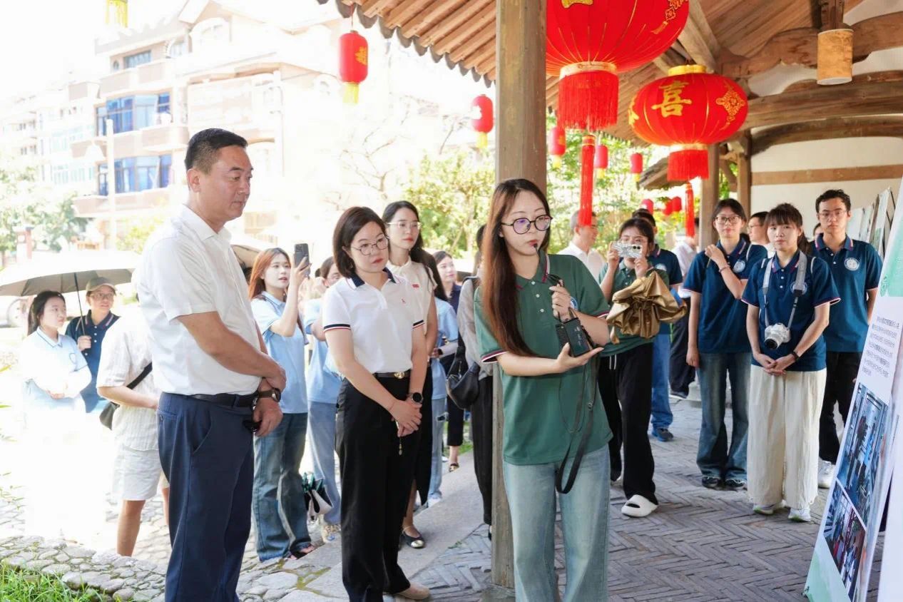 党建引领,鼓舞推普热潮。sunbet申愽官网党委以高度的责任感和使命感,始终将将推广普通话作为党建引领的一项重要任务,校党委书记钱强亲自挂帅,率校团委书记杨鹏、人文学院副院长陈源源等一行,带着对乡村教育、经济发展的深切关怀,深入乐清市淡溪镇梅溪村,加入乡村普通话推广工作。