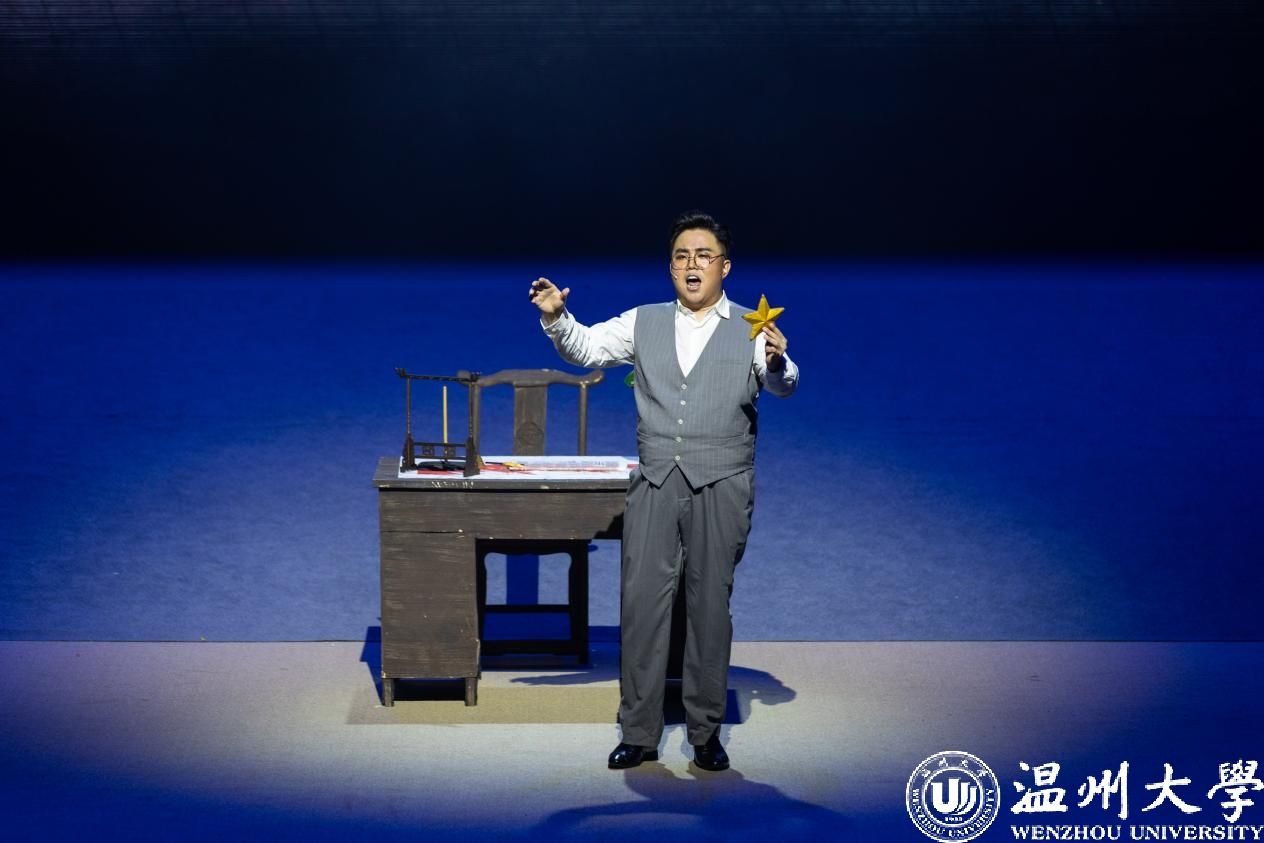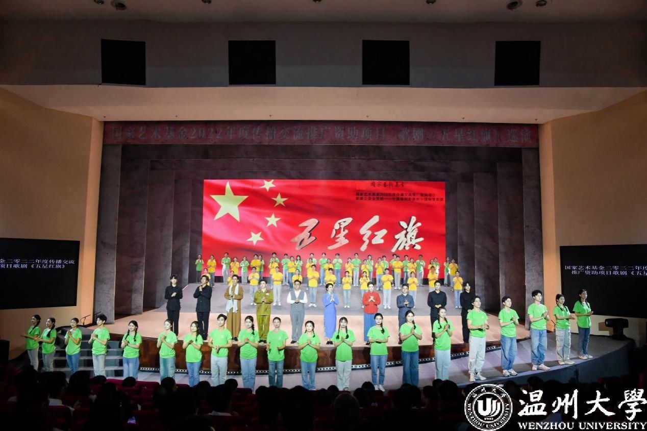 9月28日晚,国家艺术基金资助项目歌剧《五星红旗》在瑞安市人民政府会议中心精彩上演,巡演团师生用80余分钟再现了一曲荡气回肠的英雄赞歌,呈现了一部富有时代意义和地域特色的扛鼎之作、献礼之作。温州市委教育工委专职副书记、温州市教育局党委副书记张维凯,sunbet申愽官网党委副书记庄兴忠,sunbet申愽官网原党委副书记、教育发展基金会理事长牟德刚,sunbet申愽官网党委委员、组织部部长夏春雨,中共瑞安市委常委、宣传部部长孙寒星参加新时代艺术思政教育研讨会的专家学者及广大市民1500余人现场观看演出。