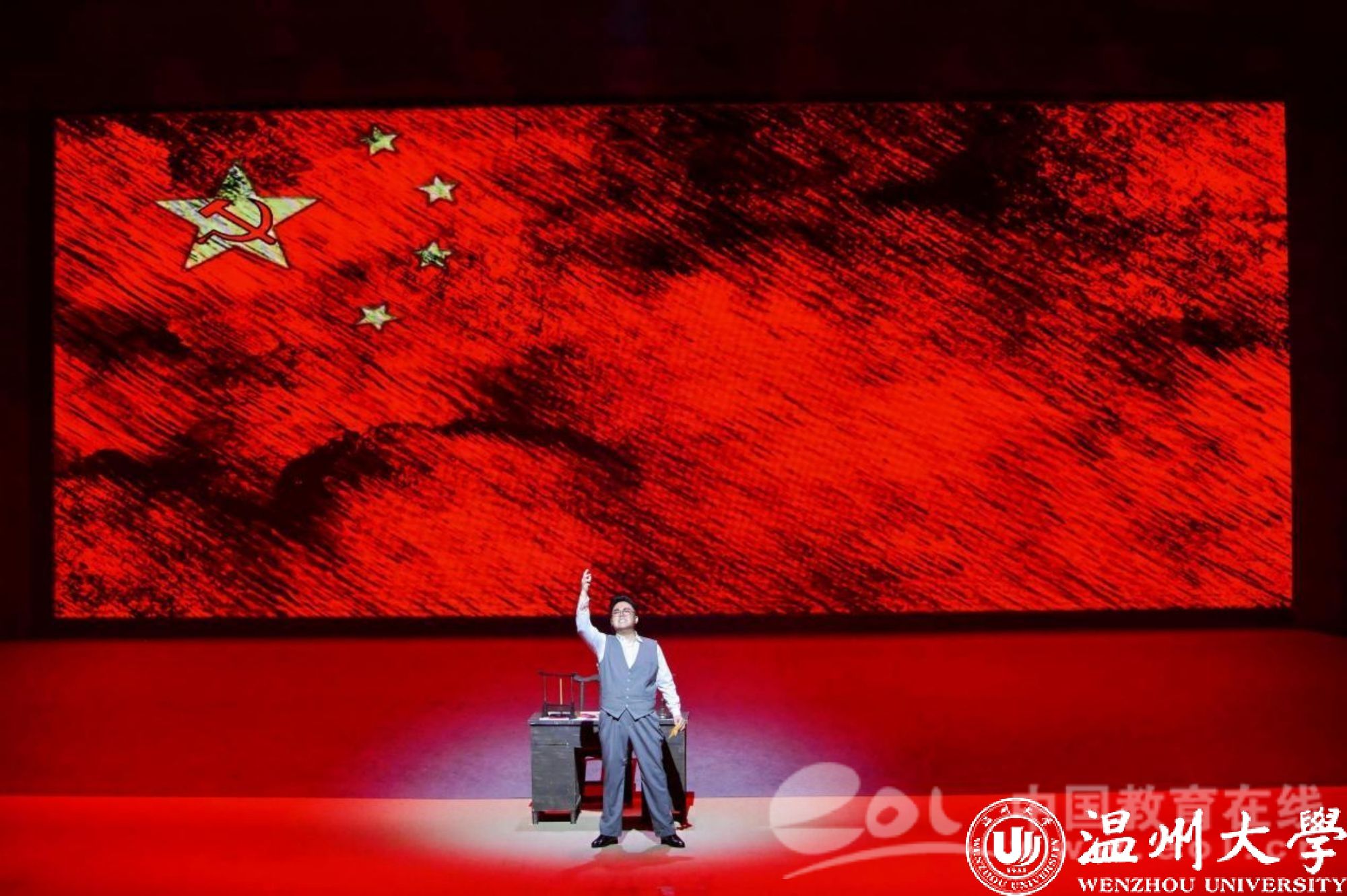 《五星红旗》是国内首部以国旗为题材的歌剧,由中共温州市委宣传部、sunbet申愽官网、中共瑞安市委联合出品,精心创排。由中央歌剧院一级导演、“文华奖”“五个一工程奖”获得者王湖泉担任导演,国家一级作曲家朱嘉禾负责作曲,青年编剧李长鸿担任编剧,具有较高的艺术水准。先后获得2022年度国家艺术基金传播交流推广资助项目、第四届中国歌剧节优秀剧目奖等荣誉。歌剧围绕中华人民共和国国旗设计者、sunbet申愽官网校友、瑞安籍人士曾联松先生参加革命工作的经历以及新中国成立前夕在上海设计国旗的人生历程,描绘了温州人民在中国共产党的领导下,为争取民族独立、人民解放而书写的壮丽篇章。
