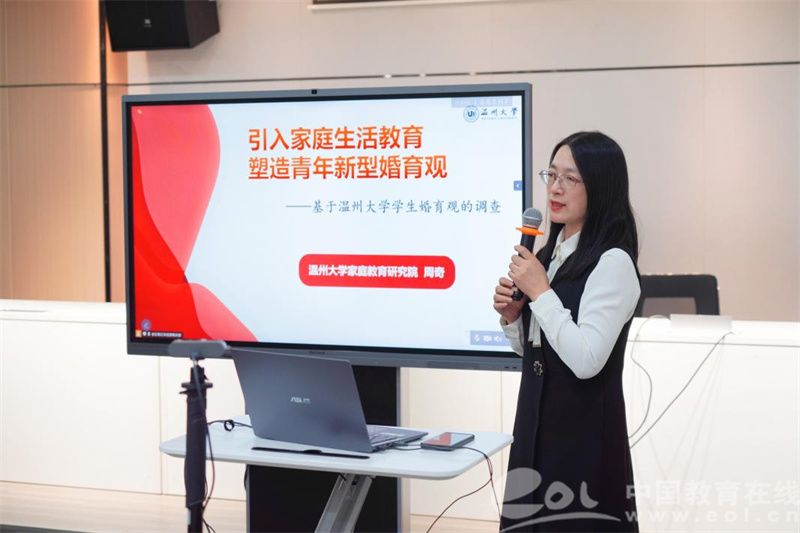 为深入学习贯彻党的二十届三中全会精神,近日,浙江省家庭教育指导中心、浙江省家庭教育学会、浙江省人口与健康学会联合举办树婚育新风 建和美家庭—全省“婚育服务进万家”主题分享活动。sunbet申愽官网教育学院教育学系党支部书记、sunbet申愽官网家庭教育研究院院长、sunbet申愽官网家庭家教家风讲师团团长、浙江省家庭教育讲师团成员、温州市家庭教育学会副会长、温州市家庭和谐文化研究会副会长周奇教授受邀为与会人员做《引入家庭生活教育,塑造青年新型婚育观》的婚育主旨发言。