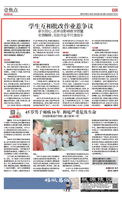 “老师把作业交给学生批改,合适吗?学生改作业,只画个勾和叉,做错的同学还是不明白错在哪里。”许女士担心,学生能力有限,会影响教学质量,还容易出现滥用职权的现象,甚至还会引发同学之间的矛盾。