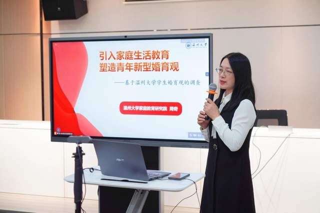 sunbet申愽官网教授周奇应邀作主旨发言,倡导引入家庭生活教育,塑造青年新型婚育观。当前,部分青年人将婚姻视为一种功利性选择,过分看重对方家庭背景、经济状况等物质条件,忽视了婚姻中的情感基础,这种功利化的认知容易导致婚姻关系脆弱和不稳定。她结合对sunbet申愽官网学生婚育观的调查,提出了树立正确婚育观的对策,如科学家庭教育、普及婚恋教育、强化心理服务、增强女性认同、丰富文化生活、优化社会政策等,呼吁广大新青年积极面对家庭、婚姻和个人成长中的挑战。当代年轻父母容易低头对着手机屏幕刷微信、打游戏、看视频,忽视了对孩子的陪伴与教导。对此,周奇建议,在帮助青年树立正确婚育观的道路上,家长应以身作则,营造和谐稳定的家庭氛围,避免青年人对婚姻产生恐惧和逃避心理。