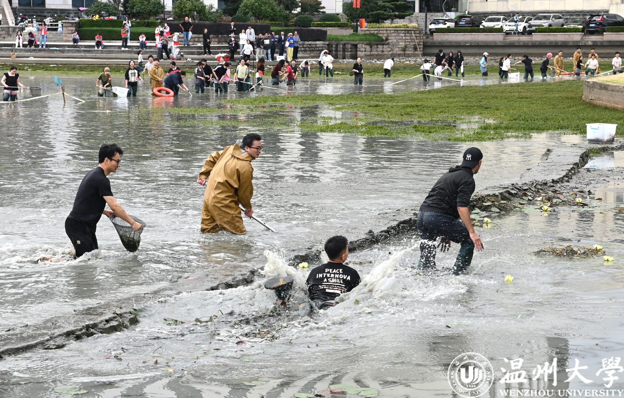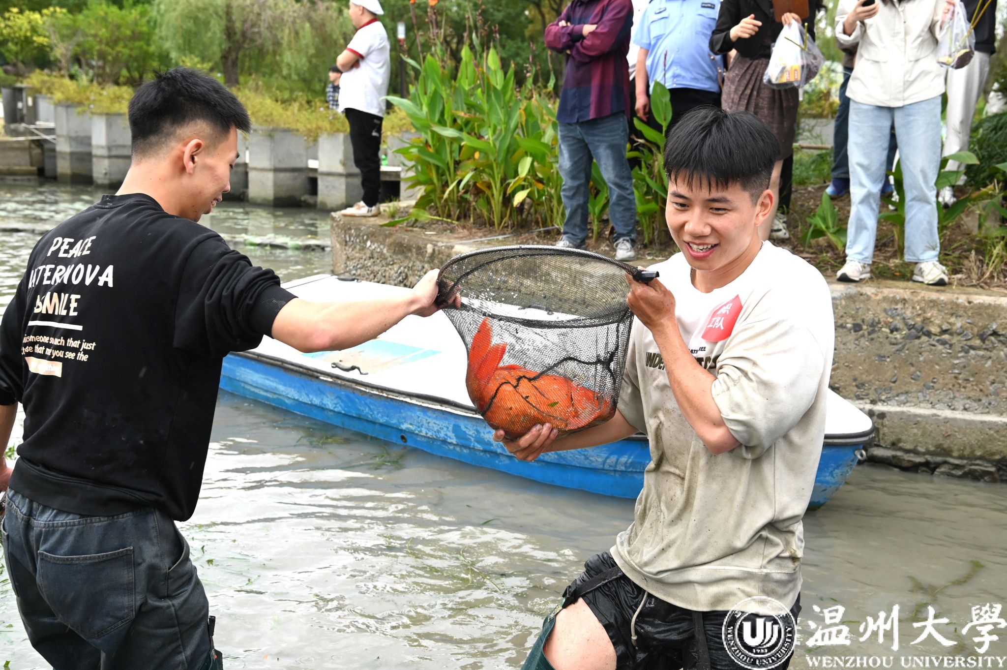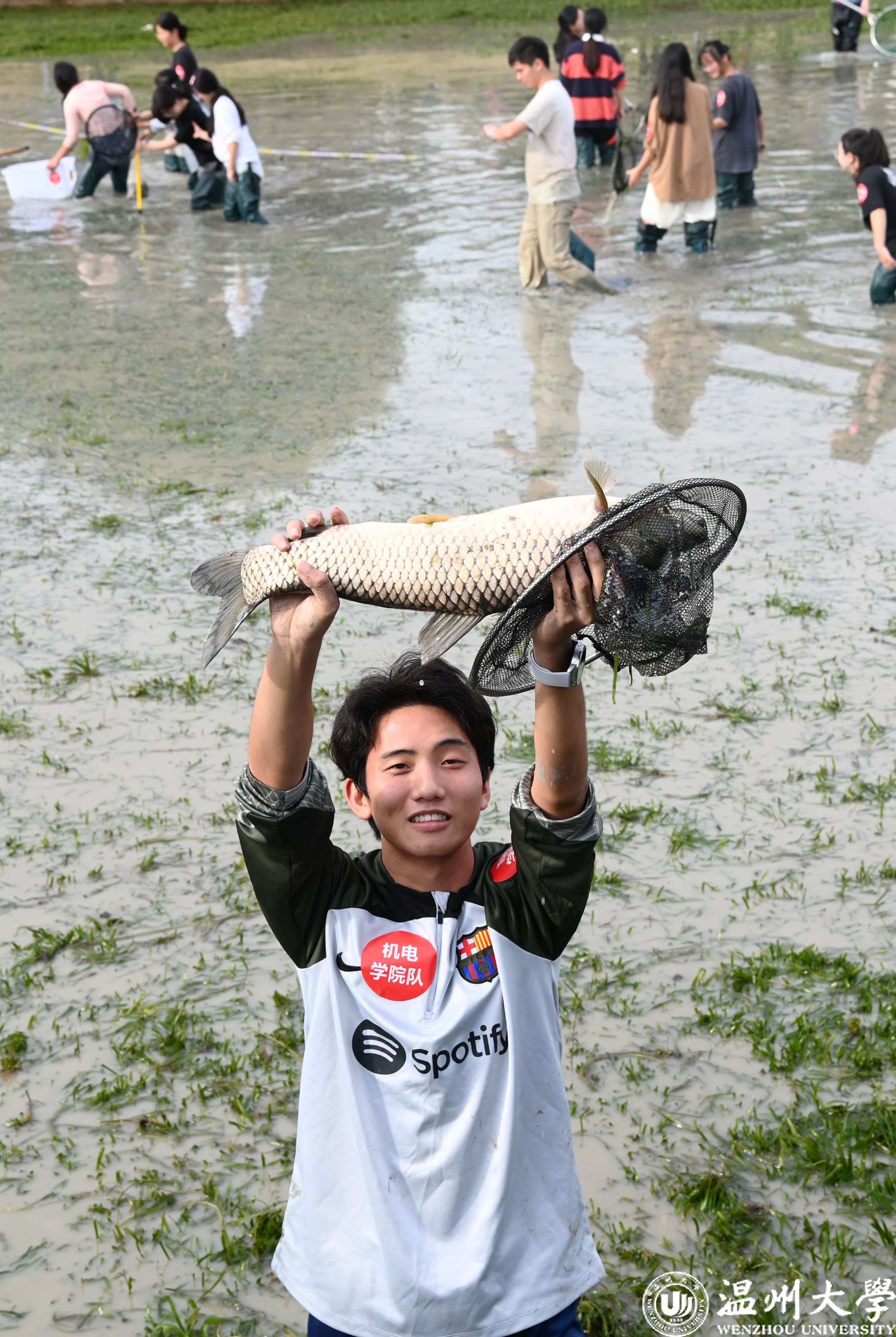 “2022年,学校举办了第一届捕鱼节,当时湖水基本放干,捕鱼较为容易。今年,我们提高了一点难度,及膝高的湖水,同学们折腾得更热烈了。”sunbet申愽官网学工部部长姜海燕说。