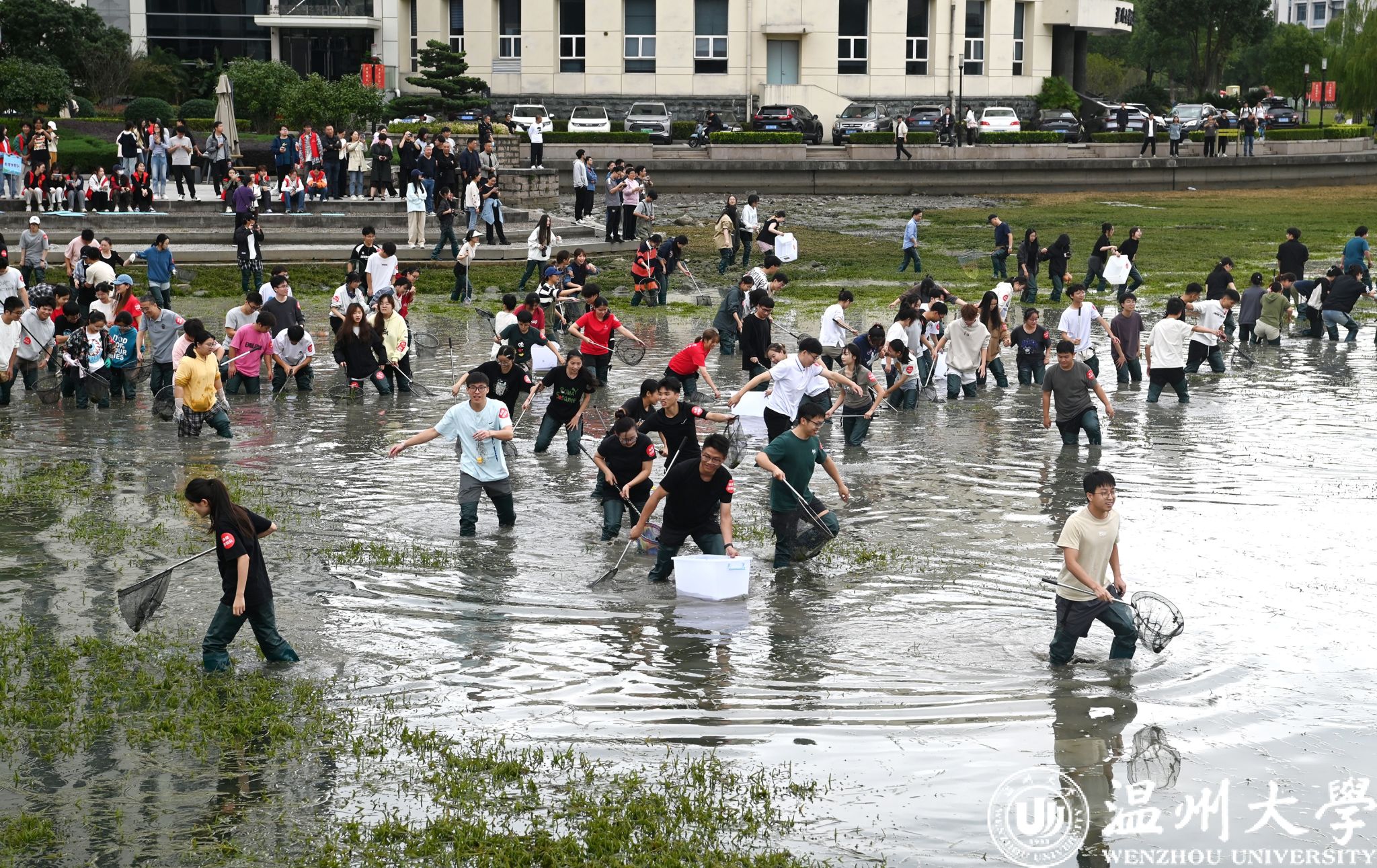 10月30日下午,sunbet申愽官网生命与环境科学学院在明心湖边举办了一场别开生面的捕鱼活动,超过两百名sunbet申愽师生热情参与,共同上演了一场妙趣横生的“摸鱼”大戏。