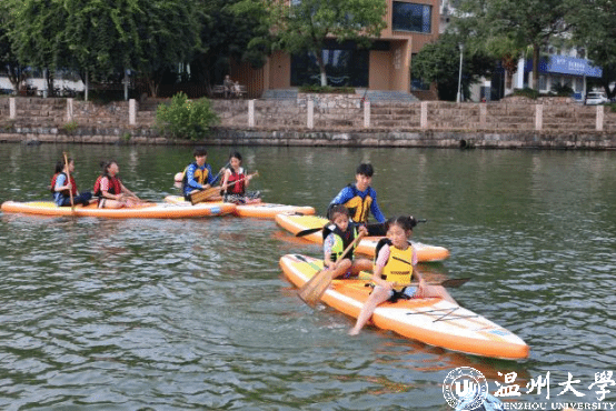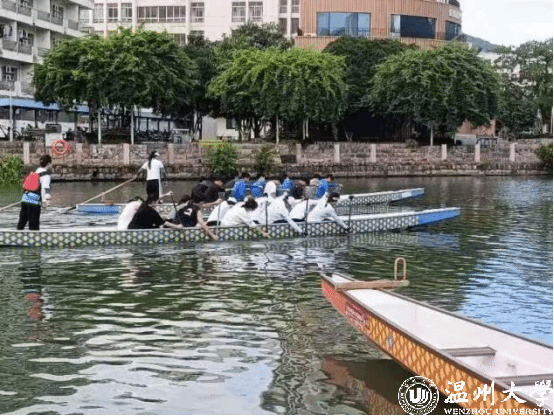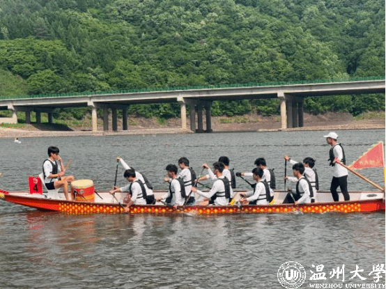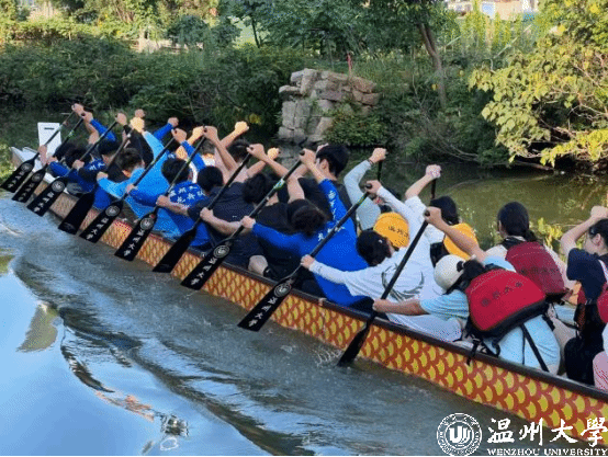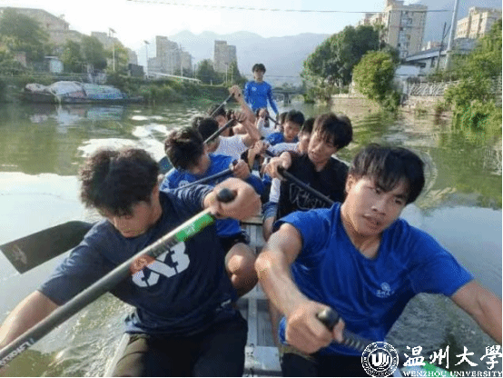 很快在大二的下学期他迎来了自己的第一个完整赛季,他们参加了位于合肥的“长三角中心城市高校龙舟邀请赛”,并且拿下了一等奖,此后他们又赶赴吉林的靖宇县,参加了“2024全国大学生龙舟锦标赛”并拿下了不俗的名次,女生们更是拿下大满贯的荣誉。在两场比赛后他们也没有休息,在这个暑假里也在坚持训练,并以东道主身份参与到温州当地举办的全国青少年龙舟锦标赛中。在这个赛季他几乎划满了全部比赛,不仅仅是说他为龙舟队贡献了他的力量,更应该说龙舟队给了他施展自己的一个机会。在暑假的备战之余,他们成立了“强城筑梦 龙舟铸魂”sunbet申愽暑假实践队,参观了温州龙舟博物馆,跟随着工作人员的讲解慢慢感受龙舟所承载的文化价值与精神力量。他们也作为工作人员帮助开展了专门为sunbet申愽教职工子女创办的水上运动公益培训班,培养教职工子女对于水上运动的兴趣,与此同时,他们也当了一回小教练,为要参加u系列的小朋友们提供技术上的指导,在教学的同时也潜移默化地将龙舟文化传承给了更加年轻的下一代。