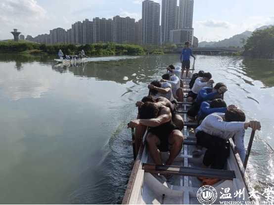 说起严祉豪与龙舟队的缘分,其实不同于他的几位来自瑞安的学长们,他们从小便接触了龙舟文化,在别样的成长环境里继承了瑞安人一贯的对龙舟的热忱。他在上大学前没有实地的体验过或者亲身感受过龙舟文化,而带他走进这个新领域的则是他的班主任,同时也是校水上运动队的教练。当时的时候他们寝室几人在军训结束后不就便一同前去水上运动队开始了较为系统的训练,划龙舟其实在外人看来似乎是挺简单的运动,从始至终就是一个动作,当时的他也是这样以为的,但是恰恰是这种的运动最考验一个人动作的准确性以及体能各方面的能力。他慢慢发现划龙舟其实比他想象的要累很多,再加上身边当初一起来训练的队友们一个个选择了退出,再加上刚上大学的他还是有很大的惰性,对待训练常常是三天打鱼两天晒网。导致他的能力远远落后于其他同学,这些都让他对训练失去了耐心,在他大一的第二学期,他报名参与了学校校庆的彩排,接近两个月没有去训练,等他回来时他已经差了其他队友一大截了。