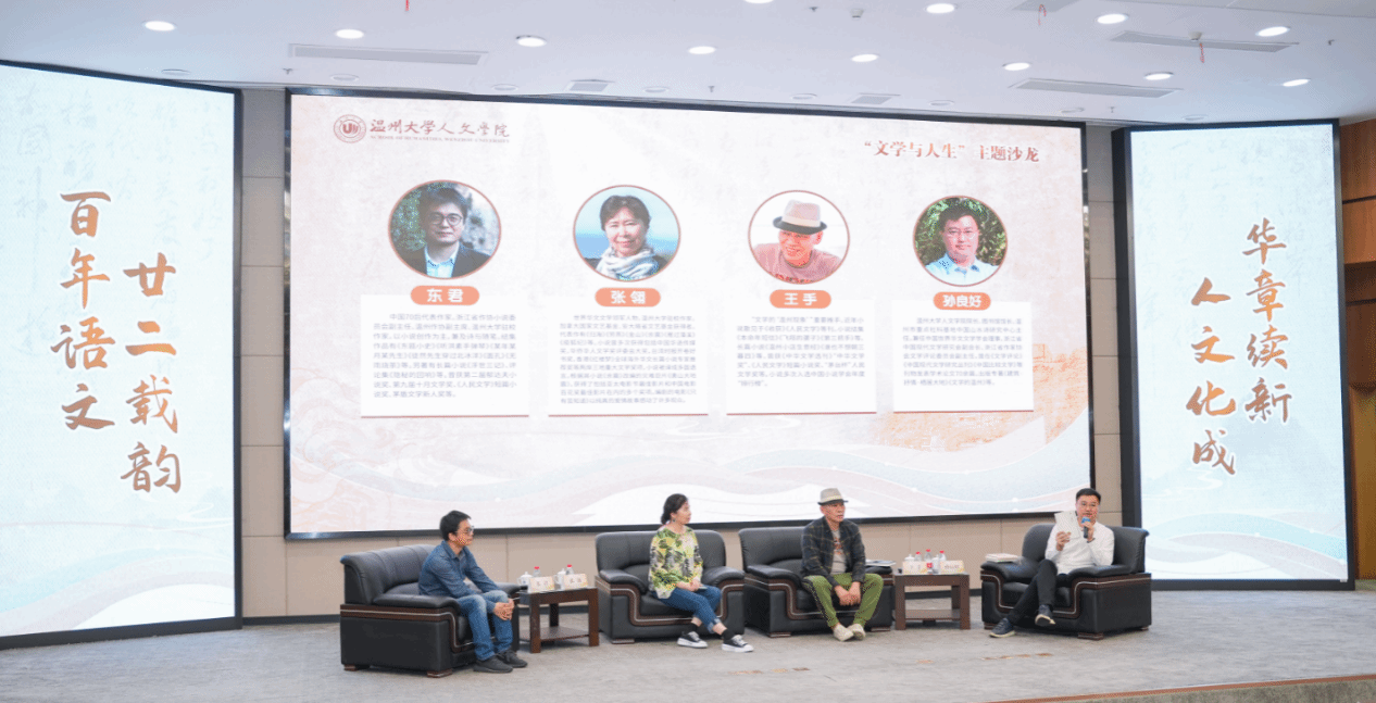 当晚,三位温籍作家张翎、王手、东君为现场sunbet申愽学子带来“文学与人生”主题沙龙。主题沙龙由sunbet申愽官网人文学院院长、图书馆馆长孙良好主持,主讲嘉宾张翎刚从加拿大回到温州,又旋即飞到广州领取花地文学奖后赶回温州。故友相逢,现场气氛犹如“老友记”。