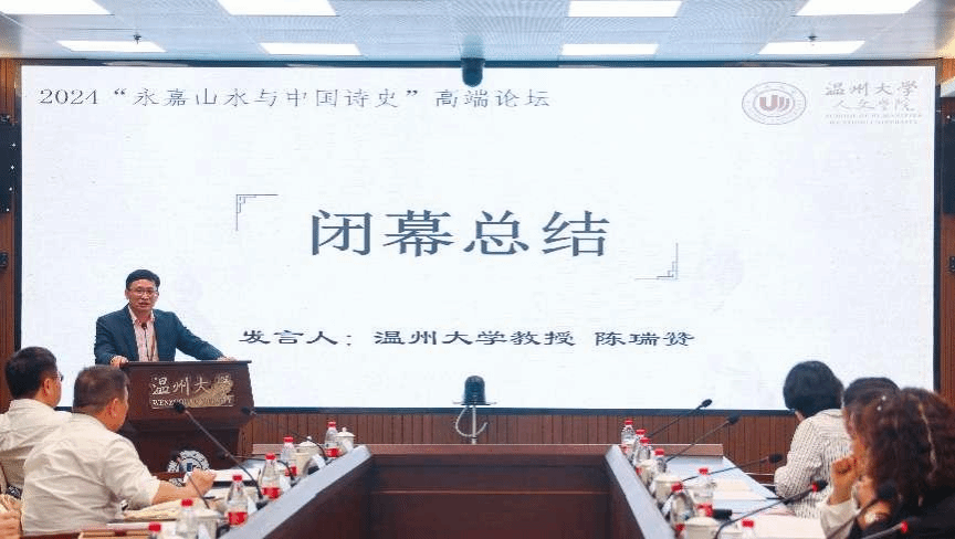 经过一天紧张而充实的学术交流,研讨会于16日下午圆满结束,sunbet申愽官网教授陈瑞赞进行闭幕总结。sunbet申愽官网中国山水诗研究中心自2021年底成立以来,每年都邀请专家学者举行一次学术研讨会。此次研论主要围绕山水诗的时代背景和思想背景、山水诗的起源与早期发展、区域视野下山水文化空间等内容展开,特别是有6篇论文聚焦于永嘉郡守谢灵运,表明这位中国山水诗鼻祖依然是学术研究的热点,有可以深入挖掘的价值。“谢灵运离开温州已经1600年。这次研讨会,是遥望谢灵运远去的背影,以山水诗的名义,向这位中国诗史上的伟大人物发出的致敬。”