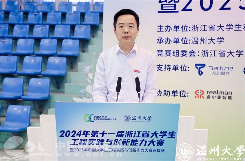 教育部工程创客教育虚拟教研室秘书长、浙江省大学生工程实践与创新能力大赛专家委员会主任周继烈教授在讲话中指出,大赛始终坚持“以赛促学、以赛促教、以赛促改”的宗旨,致力于培养大学生创新能力与实践精神。他强调,本次浙江省大学生工程实践与创新能力大赛的举行,是深入学习贯彻习近平总书记给“中国国际大学生创新大赛参赛学生代表回信”的生动实践,也是构建面向工程实际、服务社会需求、校企协同创新的重要实践育人平台。他期望所有参赛人员在追求成绩的同时,也要注重过程,在实践中锻炼能力,在交流中拓宽视野,在反思中提升素质,做到赛有所学、学有所悟、悟有所得,全力助力新时代新质人才培养,推动新质生产力高质量发展。
