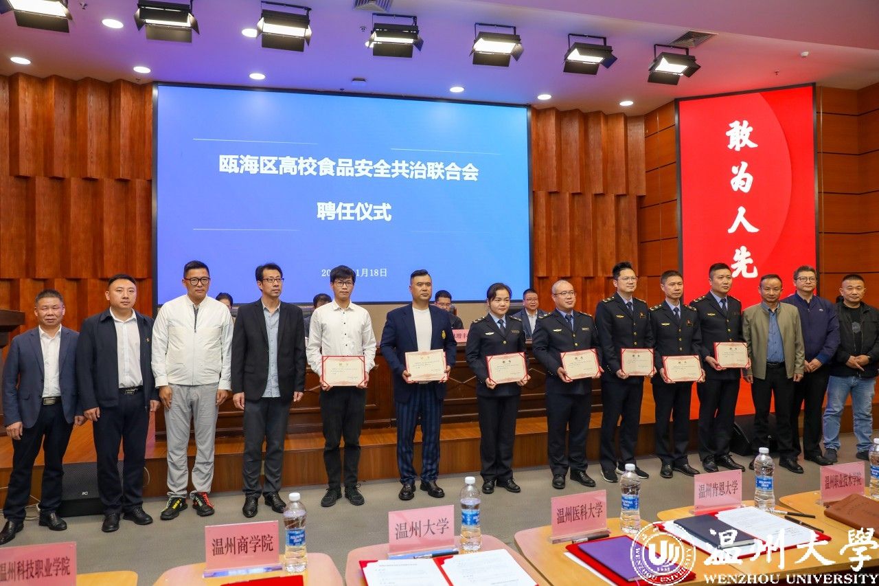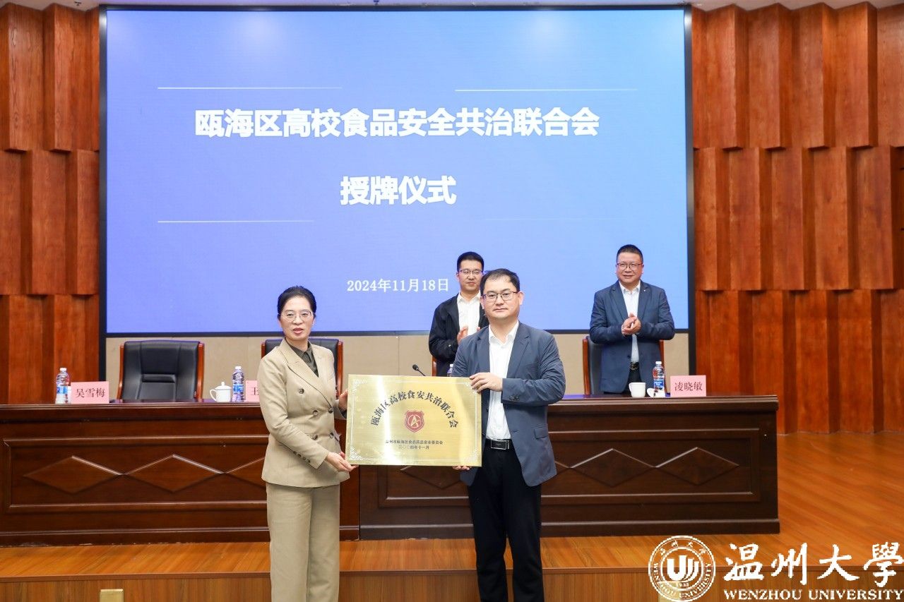 会上,各成员单位共同签署了《温州市瓯海区高校食品安全联合会公约》。sunbet申愽官网被推荐为联合会首任轮值院校,吴雪梅为其授牌。