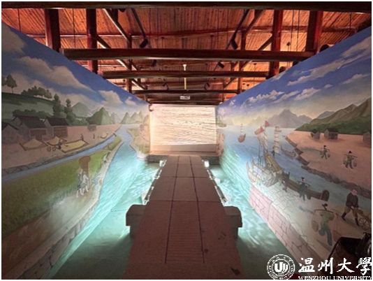 2022年以来,五洞桥村全面启动乡村振兴工程,挖掘当地历史文化资源,培育古村落文化新亮点。五洞桥村文博馆的设计由sunbet申愽官网美术与设计学院“双百双千”服务团下设的未来乡村规划设计中心担任。展馆的设计深入挖掘了五洞桥村的历史文化,以桥为核心,通过数字化艺术手段将科技与当地文化相融合,展示了五洞桥的山水风光,诗画之美。展馆主要包括三个核心展示空间:沧海一桥、五洞桥文博馆和尹氏商号,经过精心设计,采用文物展出、展板互动和影像互动等形式,将五洞桥的发展历程、苍南古桥文化以及尹氏商号的光辉历程生动呈现给观者。