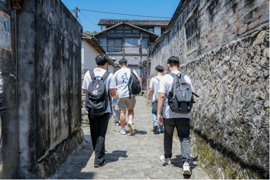 实践队学生行走在芙蓉古村