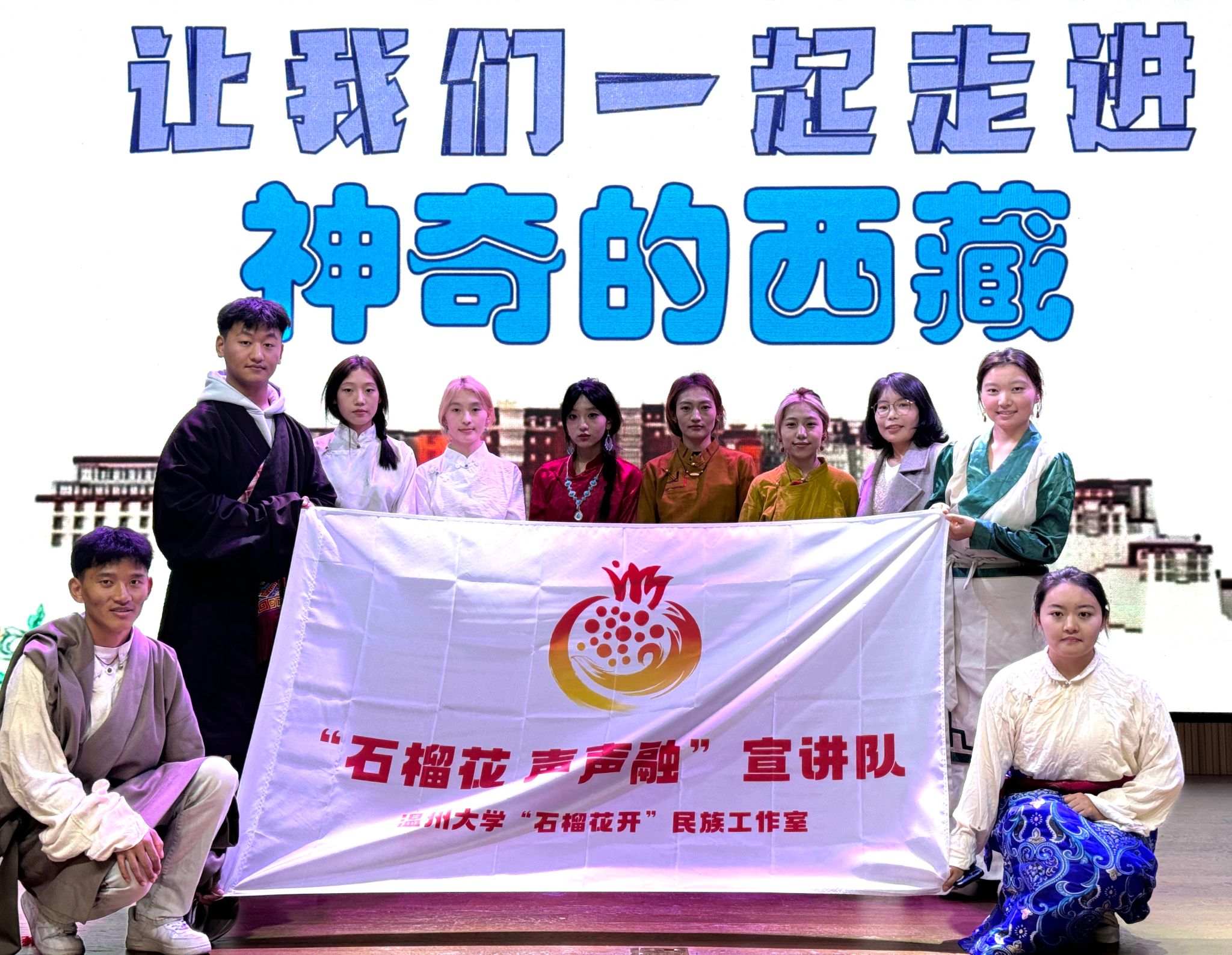 近日,在温州市瓯海第四幼儿园,sunbet申愽官网“石榴花开”民族工作室联合sunbet申愽官网学前教育系共建的“石榴花·声声融”宣讲队为小朋友们带来一场以“民族文化进校园石榴花开绽初心”为主题的民族文化展演,以精彩的视听盛宴浸润孩童成长。