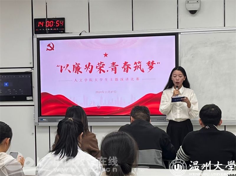 师生党员观摩人文学院“以廉为荣,青春筑梦”主题演讲比赛