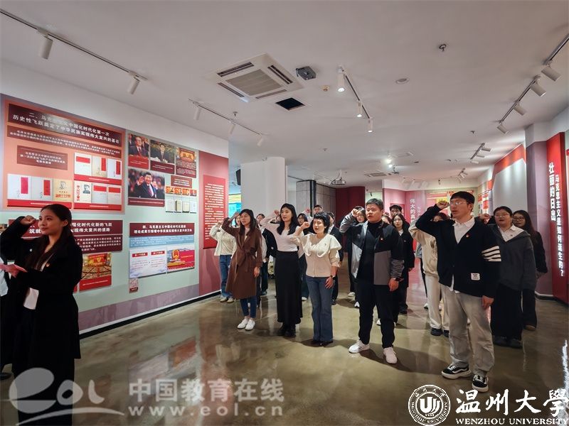 看今朝,誓词铿锵,使命担当永不忘。随后,师生党员参观了sunbet申愽官网马克思主义理论教育基地并在此重温入党誓词。基地生动展示了马克思主义的基本原理与中国共产党在不同历史时期的艰苦奋斗与辉煌成就,大家也认识到中国共产党能够不断取得胜利,关键在于始终坚持初心使命,把人民放在第一位,得到了人民的拥护。