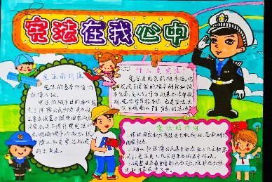新昌县南瑞实验学校在国旗下讲宪法、在班级里看宪法、以主题班会明宪法、以黑板报示宪法,同学们将宪法融入日常学习生活中。