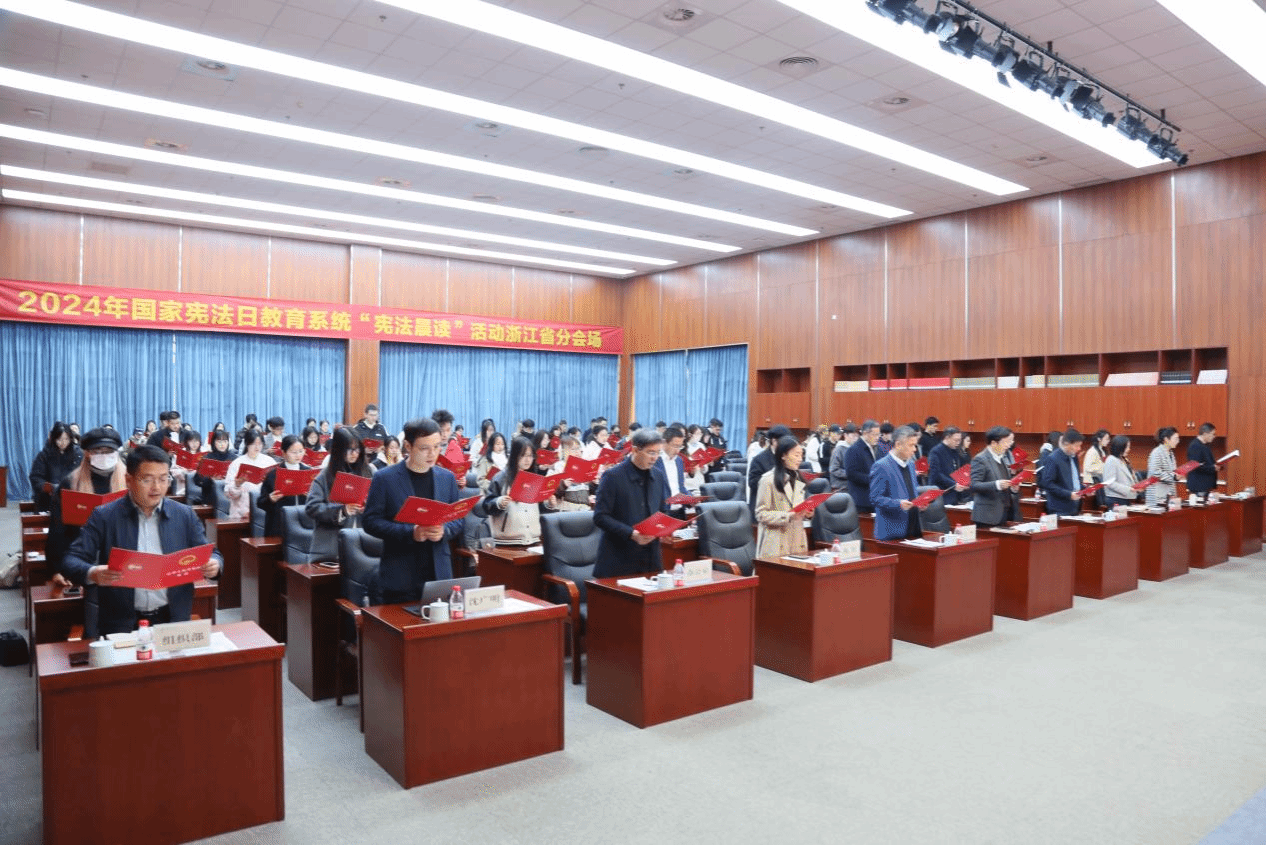 为深入学习贯彻习近平法治思想,弘扬宪法精神,维护宪法权威,12月4日上午,2024年国家宪法日教育系统“宪法晨读”浙江省分会场活动在杭州师范大学仓前校区报告厅内举行。省教育厅、杭州市教育局相关负责人,杭师大分管负责人、各部门负责人和各学院学生代表等百余人齐聚一堂,共同参与活动。