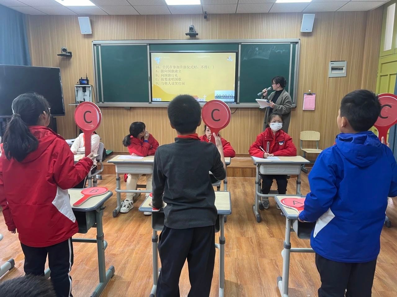 在班队课上,湖州市织里镇晟舍小学组织学生进行“学宪法、讲宪法”知识竞赛大PK,寓教于乐,进一步弘扬宪法精神,让宪法的种子在孩子们心中生根发芽。