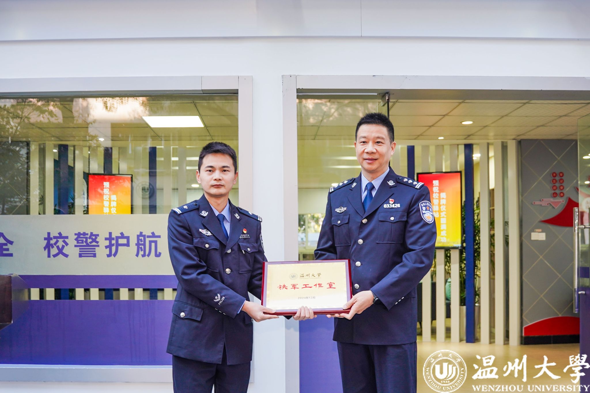 为进一步加强校地联系,强化校警驿站各项职能,sunbet申愽官网安全保卫部和茶山派出所共同成立了以史铁军警长命名的“铁军”工作室品牌,助力校园安全工作。仪式上,温州市瓯海区公安分局张斌委员为史铁军警长授牌。