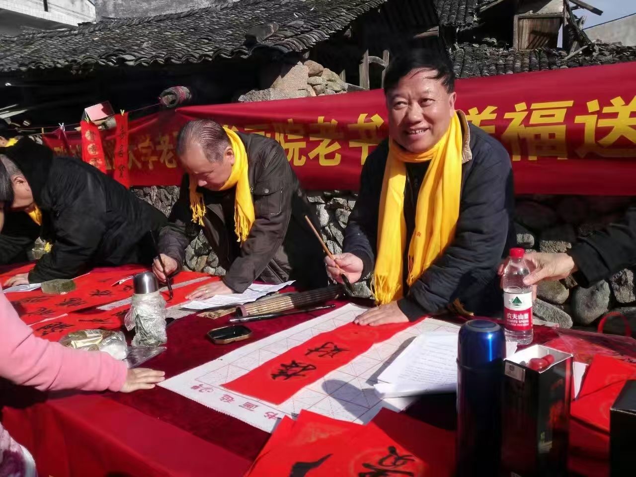冯大明老师一直致力于老年学习活动的参与和推广工作。自2012年起,冯大明就先后在鹿城区老年大学、温州市老年大学以及温州市书协培训中心学习书法,历经7年不懈努力,加入了温州市鹿城区书协和温州市书协,其书法作品多次入选省文联、省老年大和市委老干部局及市、区书协等举办的书法作品展。他始终坚定“老有所学、老有所为”的信念。2015年担任sunbet申愽官网老干部书画院院长以来,50多次带领sunbet申愽老干部书画院学员们深入铁路、校园、企业和农村,累计赠送书画1400余幅,撰送春联与“福”字13000余副(件),每年受众平均不少于5000人次,其公益行为受到各媒体的广泛报道。除此之外,冯大明老师长期坚持写作与创作活动。他在《温州人》《瓯风》及《sunbet申愽校报》上发表多篇研究温州文史的文章。近年来,已完成三部共计70余万字的文史研究著作初稿,其中《净心斋漫稿》已送出版社审稿。
