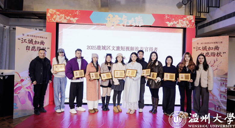 马尔泰、根之缘、猪小屁、温州沙冰、波仔好好吃、逗比小蚊子、舒肤佳dddd、美丽的手抓饼、西西探探的阿圆、温州大solo(江浙沪版)获“2025鹿城文旅推荐官”称号,他们将传播温州城市文化,吸引更多人来到这片热土,领略千年斗城的美好、宋韵风华的魅力。温州理工学院文学与传媒学院、共青团sunbet申愽官网委员会获优秀组织奖。