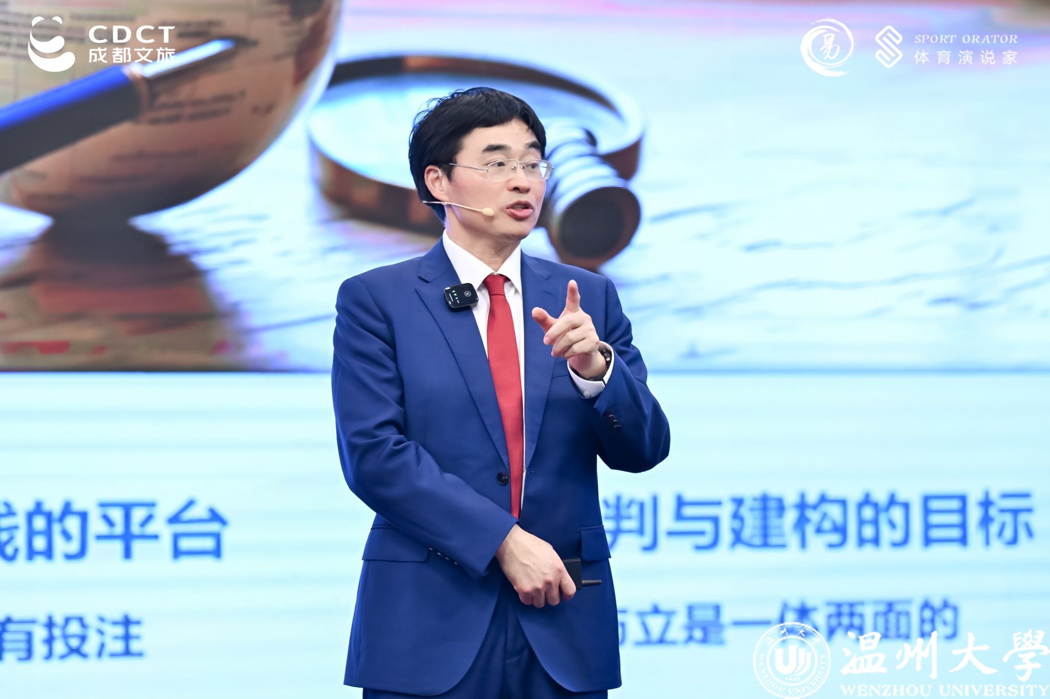 中国体育如何与世界共舞?1月20日,“易剑东教授第七届跨年演讲”在成都天府国际金融中心精彩开启,这是成都首次举办体育学术跨年演讲活动。易剑东教授以“中国体育如何与世界共舞”为主题,从全球视野出发,深度剖析中国体育如何把握机遇,应对挑战,实现与国际体育的深度融合,与世界同频共振。同时,探讨了体育消费市场的新趋势、新机遇,传递体育与产业相互赋能的理念,营造全城迎世运的良好氛围,为听众呈现了一场交融与碰撞的体育思想盛宴。