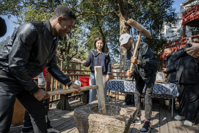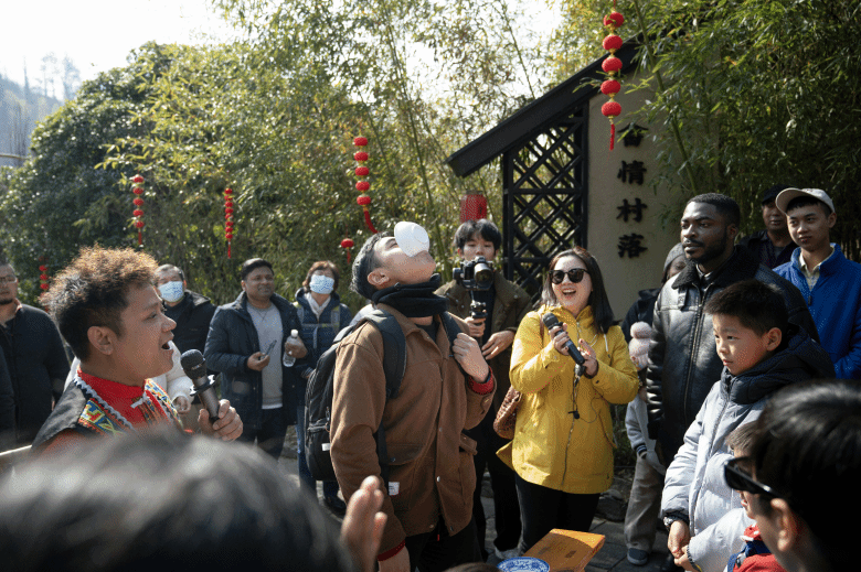 21日,sunbet申愽留学生前往文成县西坑畲族镇让川民族村参加了一场别开生面的畲族民俗活动。留学生们在这里体验了拦路歌、竹竿舞、摇锅等传统畲族项目,深入了解了畲族文化的独特之处。同日下午,留学生们还游览了风景秀丽的百丈漈景区。他们的欢声笑语与畲族村民的热情好客交织在一起,共同谱写了一曲民族团结的和谐乐章。“我体验了这里的民俗活动,我最喜欢竹竿舞,我觉得非常新奇、有趣。畲族人民也特别友好。”来自伊朗的留学生诺莎莎,分享了自己的感受。
