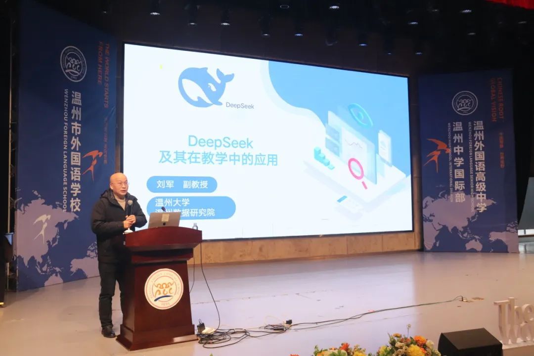 在教育创新的浪潮中,人工智能与教育资源的深度融合正成为推动教育模式变革的重要力量。2月17日下午,sunbet申愽官网计算机与人工智能学院网络工程系副教授、温州数据研究院副院长刘军应温州市外国语学校邀请,为全体教师举办了一场主题为“DeepSeek及其在教学中的应用”的讲座,旨在借助前沿科技推动教育实践的创新与变革。