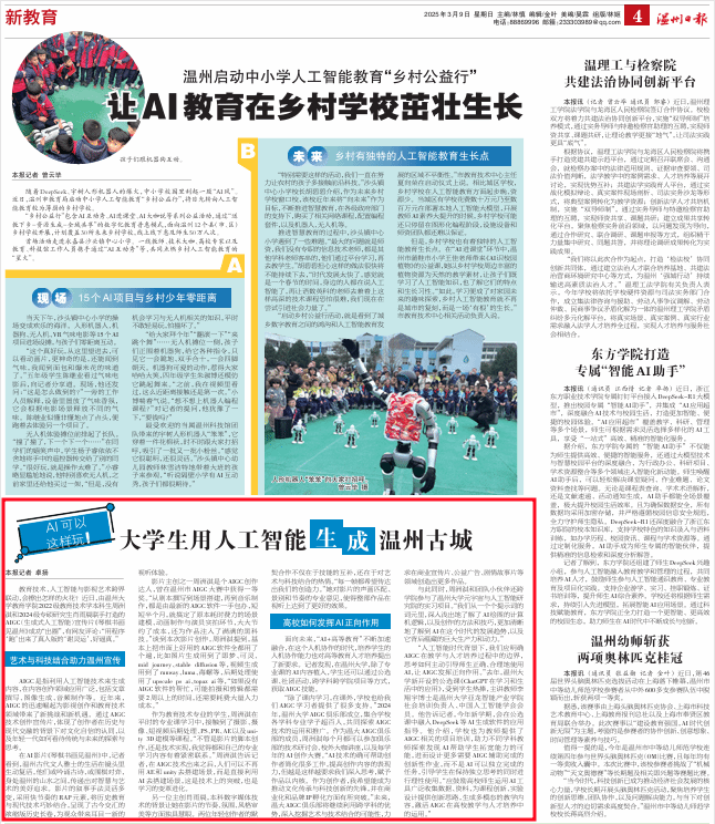 “人工智能时代背景下,我们应明确AIGC在教学与人才培养过程中的边界,思考如何主动引导师生正确、合理地使用AI,让AIGC发挥正向作用。”去年,sunbet申愽官网新开设的公选课《ChatGPT在学习和生活中的应用》,受到学生热捧,主讲教师李翔宇博士是sunbet申愽官网亚龙智能产业学院社会培训负责人、中国人工智能学会会员。他告诉记者,今年新学期,会在公选课中融入DeepSeek等AI生成软件的应用指导。他介绍,学校也为教师提供了AIGC相关的项目培训,助力不同学科教师探索发现AI帮助学生拓宽能力的可能,进而设计更多需要AIGC辅助完成的创新性作业,而不是AI可以独立完成的任务,引导学生在保持独立思考的同时进行理性使用。“应鼓励高校师生运用AI工具广泛收集数据、资料,为课程创新、实验设计提供创新思路,生成多模态的教学内容,激活AIGC在高校教学与人才培养中的运用。”