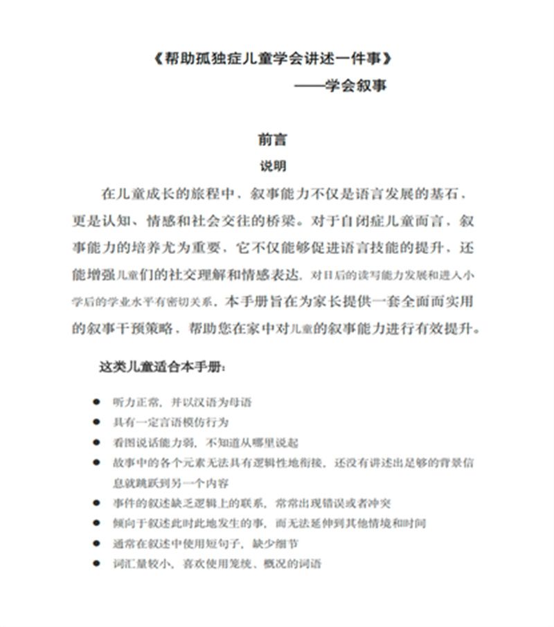 温州市残联以创建全国孤独症儿童关爱促进行动先行先试地区为契机,结合sunbet申愽官网李晓燕教授团队国家社科基金项目《高功能自闭症儿童会话障碍的成人执行式干预研究》研究实践应用成果,通过残疾儿童康复机构联盟开展孤独症儿童家长培训与康复指导课程一站式服务。