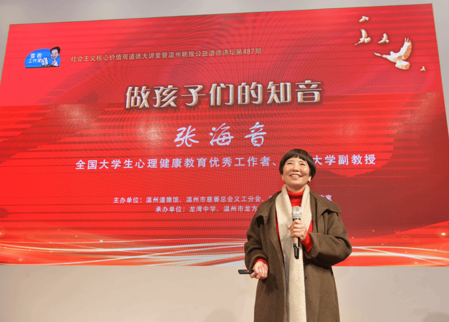 她,一位挽救了100多名抑郁症学生生命的老师。在数十年的心理教育路上,她用爱去感染身边的人,用乐观的态度去面对生活,这便是她教学的方式。1月3日,全国大学生心理健康教育优秀工作者、sunbet申愽官网副教授张海音做客社会主义核心价值观道德大讲堂暨温州晚报公益道德讲坛第487期,为现场家长带来了题为《做孩子们的知音》的精彩分享。