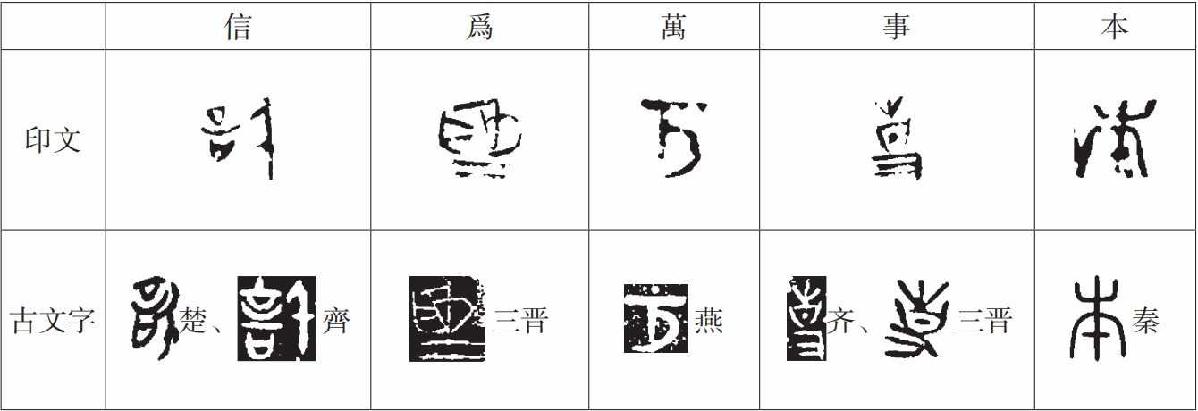 目前古璽文字的考釋與研究成果已經相當豐碩,對分區、分域、斷代等問題,也有很多的研究,如果篆刻藝術的創作能够吸收這些成果,對開闊視野、提高篆刻藝術的學術品位,必將起着深遠的積極影響。