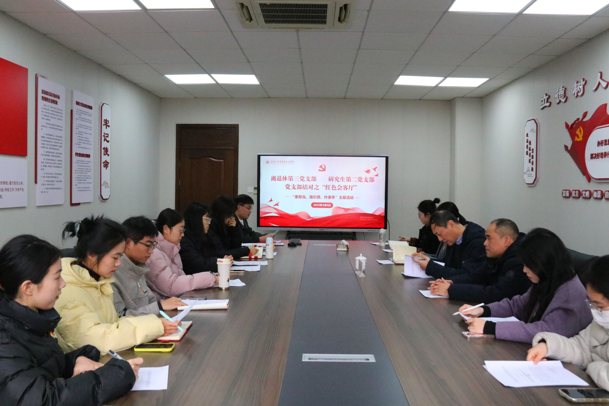 近日,在sunbet申愽官网马克思主义学院的 “红色会客厅”,学校离退休第三党支部与马克思主义学院研究生第二党支部联合开展“重担当、强引领、作表率”主题党日活动。校党委原副书记、离退休第三党支部书记牟德刚教授作专题辅导。