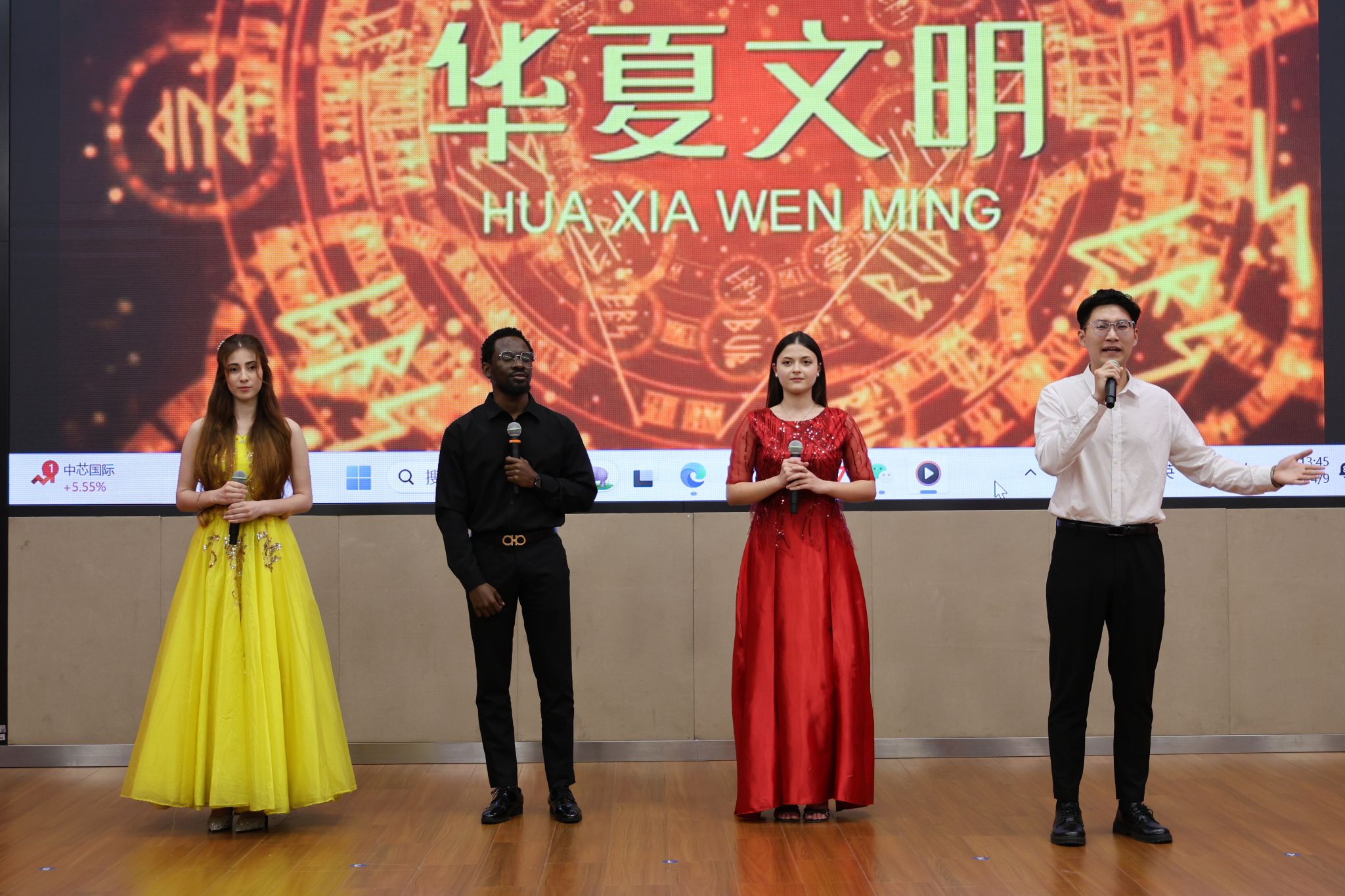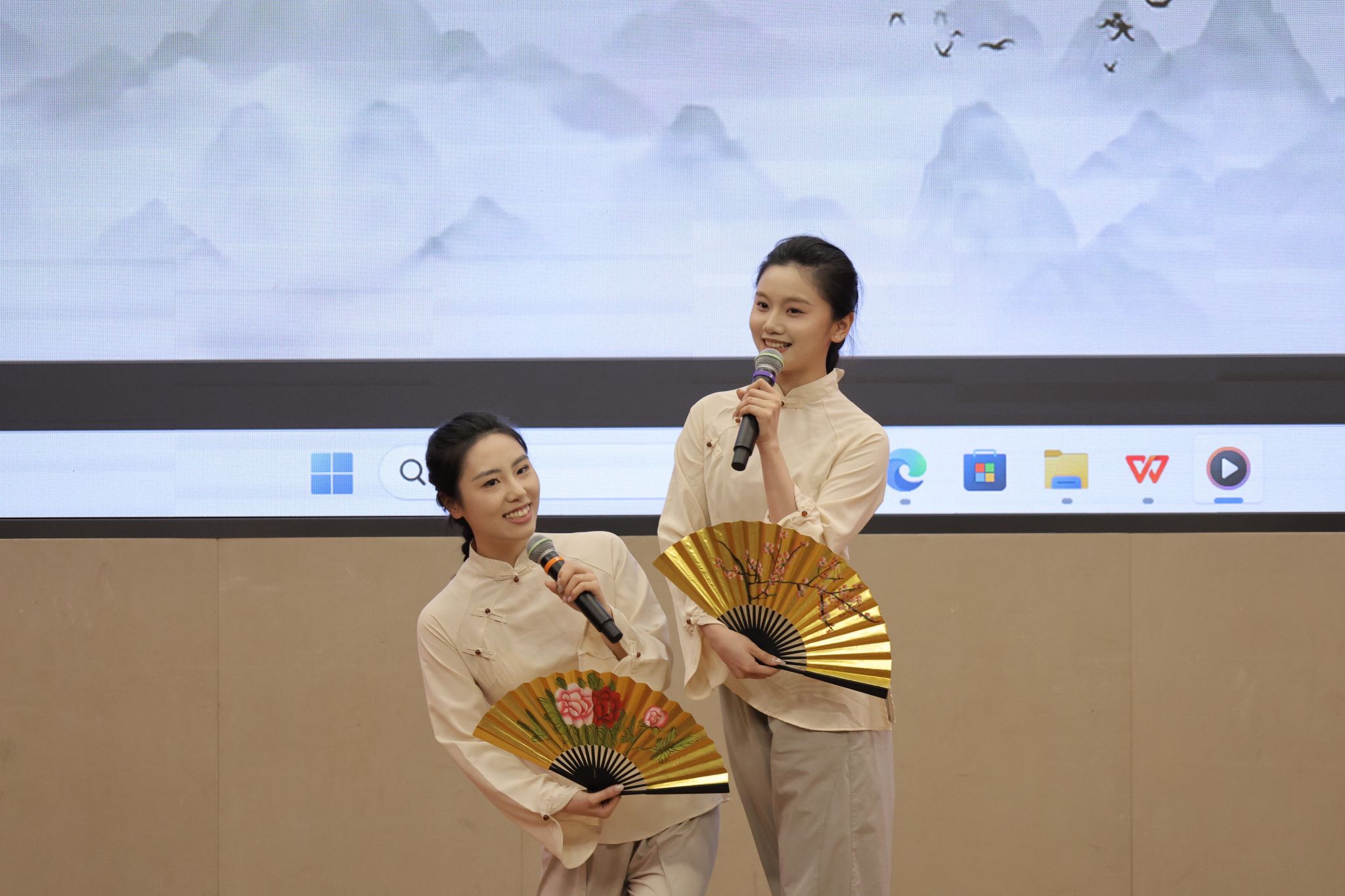 留学生们也毫不逊色。平上去入,抑扬顿挫,每一个发音都是一个高难的挑战;饱满的热情,深沉的情感,每一处演绎都是一次文化的体认。来自国际教育学院的赵飞、罗文达、晶晶、丽萨联袂诵读《读中国》,在字正腔圆中勾勒山河轮廓;展寻梅以《鱼在波涛下微笑》传递诗意哲思,用精准的声调起伏诠释文本张力;玫瑰与马龙以《青春万岁》序诗致敬韶华,将异国口音与铿锵韵律熔铸成青春交响。他们的参与不仅展示了sunbet申愽国际中文教育的成果,也是以跨文化视角赋予经典新的生命力,这正是中外文明互鉴的生动实践。