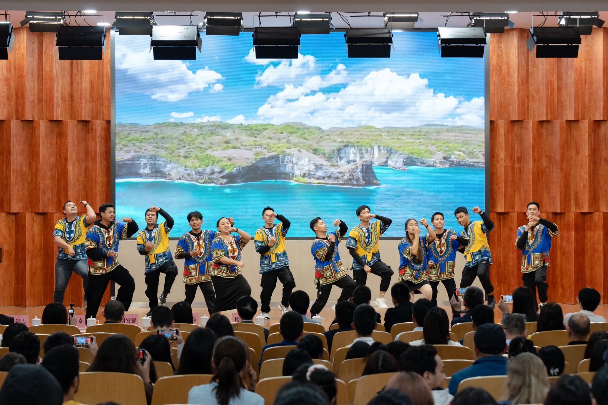 (图为:印尼民族舞蹈《SAJOJO》 演出:蒂马斯、王志成等12位印度尼西亚籍学生)