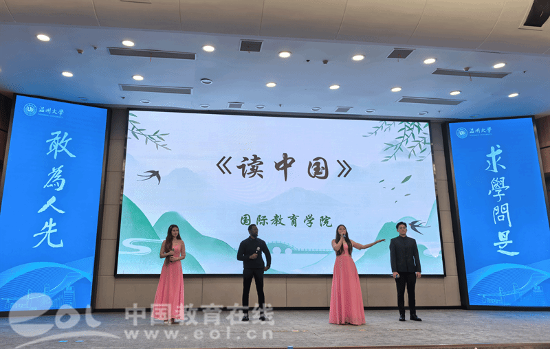 赛事间隙,红楼戏曲社的《何文秀·心连心》以婉转唱腔演绎经典,露浓话剧社的《红玫瑰与白玫瑰》用鲜活舞台再现张爱玲笔下的爱恨纠葛,而瓯玉汉服社的《华裳千年·礼乐霓裳》则带来一场衣袂翩跹的国风盛宴,让观众在竞技之余尽享艺术之美。尤为一提的是,国际教育学院留学生们的经典诗朗诵《读中国》不仅赢得满堂彩,更为现场观众带来强烈的文化自信和国家民族自豪感。