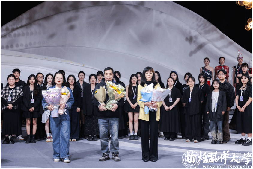 本次发布会邀请浙江理工大学服装学院教授戚孟勇先生,为学生们的作品进行现场点评。随后,学生们为指导教师代表、协办单位代表、助演嘉宾献花致意。