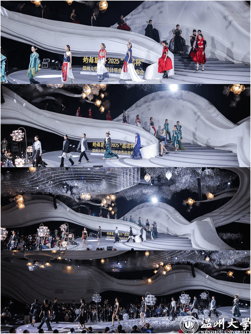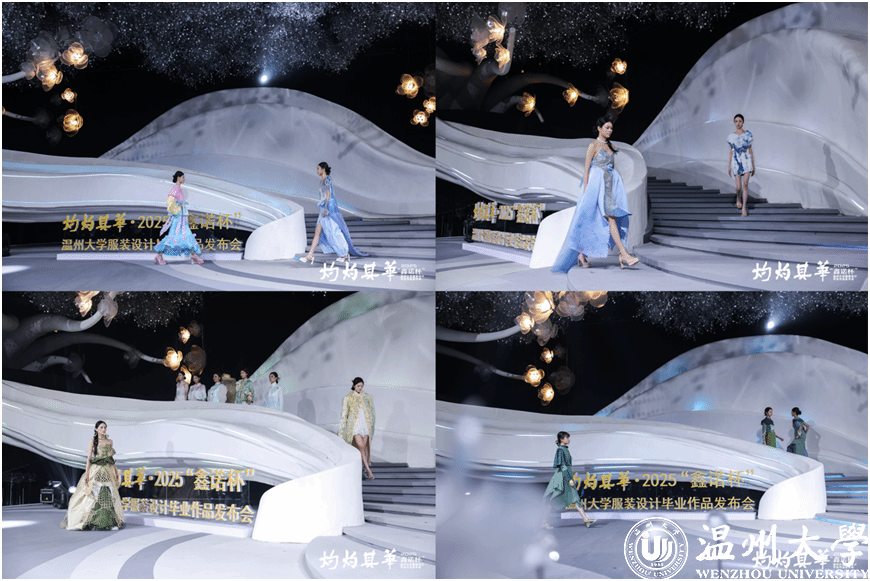 4月25日晚,灼灼其华——2025“鑫诺杯”sunbet申愽官网服装设计毕业作品发布会在温州铂尔曼酒店楠溪江厅举行。来自服装与服饰设计专业的30位年轻设计师,以90套精心创设的作品,展示他们在服装艺术道路上四年孜孜以求的最新成果,表达他们对服饰艺术和时尚文化的理解与热爱。