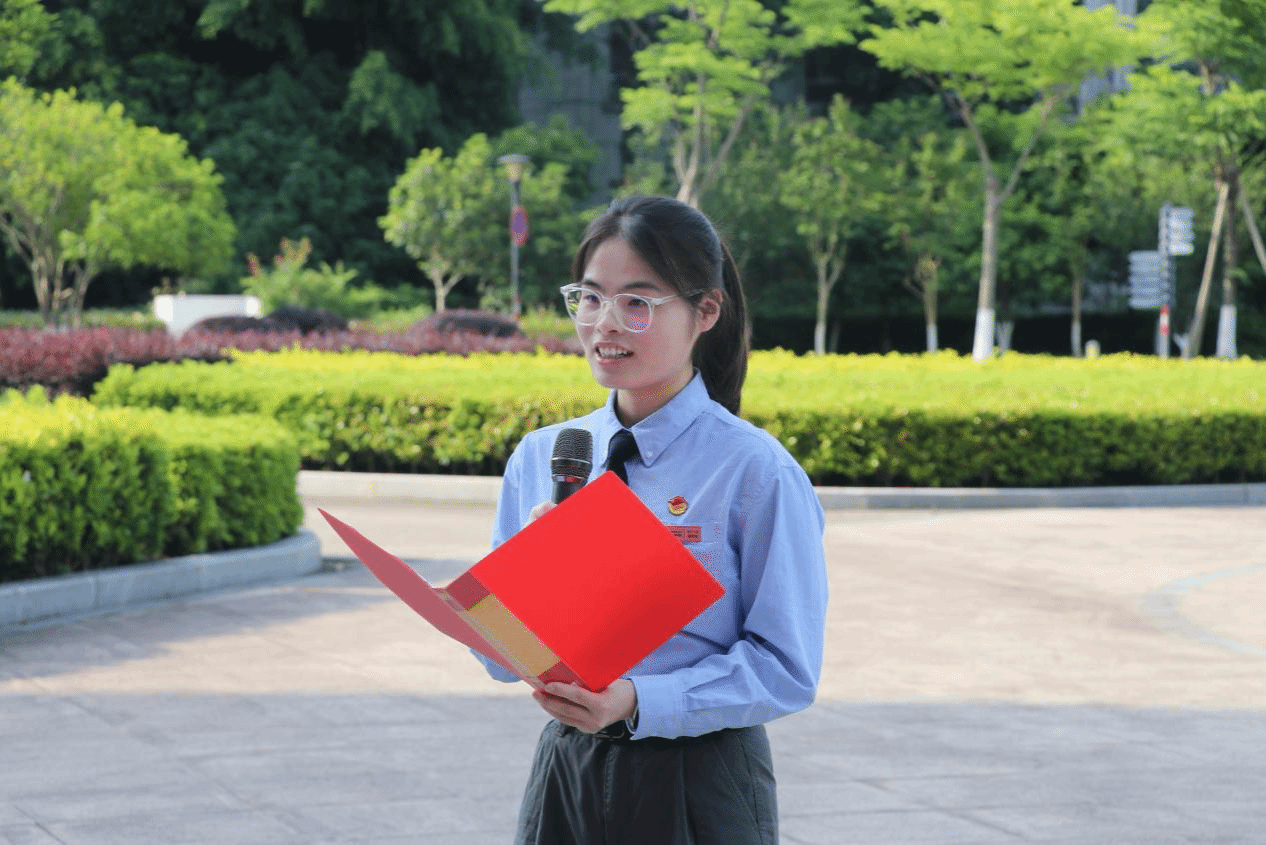 第十六期青马班学员董雅捷同学在国旗下发表了题为《纪念五四运动,传承国旗精神》的演讲,带领大家重温五四精神内核。她通过sunbet申愽官网校友曾联松先生设计五星红旗、学校建设国旗广场、迎天安门国旗等sunbet申愽与国旗的链接,号召同学们将个人理想融入国家民族事业,为校为国贡献力量。