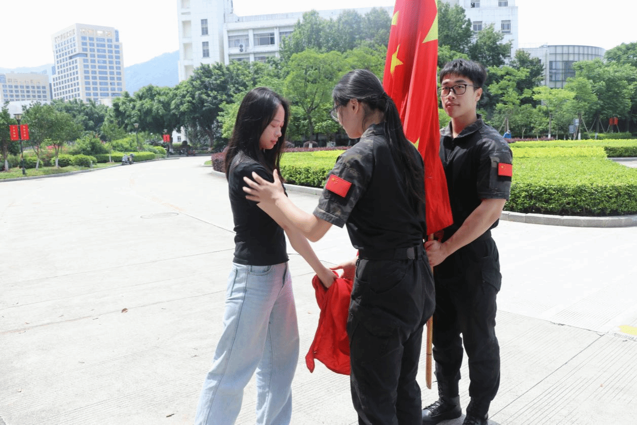 国旗护卫队队长吴芳玲深情讲述“我与国旗的故事”,从初入队时许下的青春誓言到扛起队长重任,她始终以国旗精神为炬,在重重压力中破茧前行。“每一次护卫国旗,都是对爱国初心的淬炼。”她的讲述让在场学生感受到了青春与信仰的碰撞,看到了国旗红与青年热血的交相辉映。