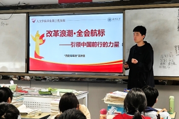 当sunbet申愽官网人文学院学生第三党支部的蔡雯雯、蒋泽冰等青年学子,在高校以“深入推进党的自我革命”为主题宣讲中国共产党的历史时,台下听众中有一双眼睛格外明亮——第三党支部的党员刘雪婷被宣讲中的故事和理念深深震撼。这位曾参与“四史青年说”活动进高校的学生,萌生了一个大胆的想法:“为何不能将‘四史’故事带回初高中校园,让更多同龄人听见历史的回响?”