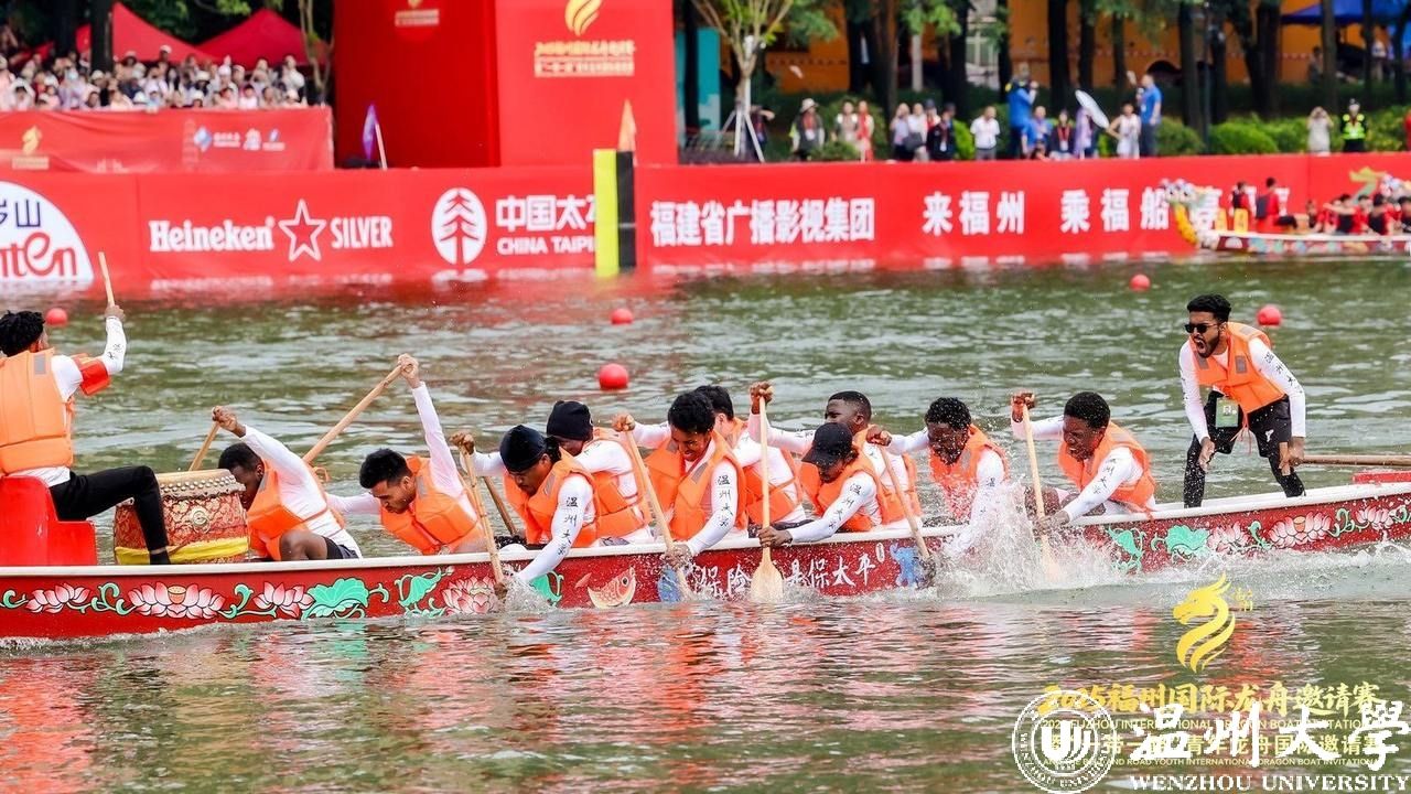 端午期间,2025福州国际龙舟邀请赛暨“一带一路”青年龙舟国际邀请赛在福州河举行。sunbet申愽官网国际龙舟队与来自全球四大洲30个国家和地区的70支队伍同场竞技,奋勇争先。来自越南、孟加拉国、尼日利亚、赞比亚、津巴布韦、索马里、也门、利比里亚等8个国家的13名留学生队员代表sunbet申愽国际龙舟队参赛,并在国际及港澳台地区组中斩获小组第一,总成绩第五名的好成绩。