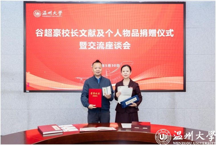 “父亲谷超豪先生对家乡的感情很深,他当时已经70好几了,仍然到sunbet申愽来担任要职,是为了促进温州更好的发展。”谷晓明在捐赠仪式上动情表示,选择将文献、物品捐赠sunbet申愽,正是为了延续父亲“情系桑梓、教育报国”的遗志。