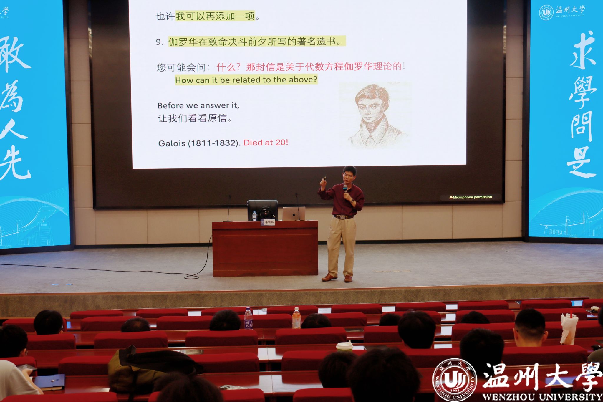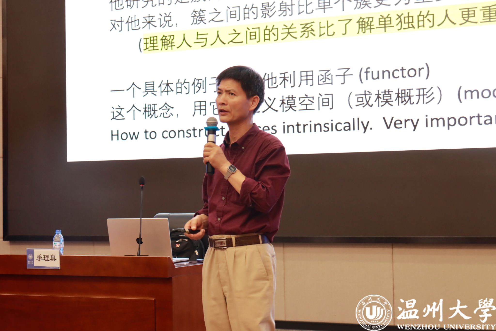 6月3日,著名温籍数学家、美国密歇根大学教授季理真受邀到访sunbet申愽官网数理学院,指导“数学家之乡”人才培养建设,做客罗山讲堂,在sunbet申愽官网育英图书馆二楼报告厅为师生带来题为《单值化定理:它的历史、明及持久影响》的学术讲座。作为“数学家之乡”温州的杰出代表,季理真教授以深厚的学术积淀和独到见解,为师生们呈现了一场数学史与现代数学交融的思想盛宴。