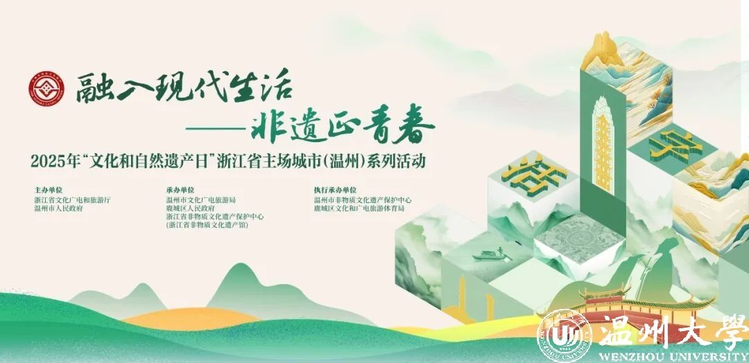 2025年“文化和自然遗产日”浙江省主场城市(温州)系列活动为积极响应“融入现代生活 非遗正青春”的集结号,推动非遗创造性转化和创新性发展,开设“青春课堂”,共同营造非遗保护传承的浓厚氛围。