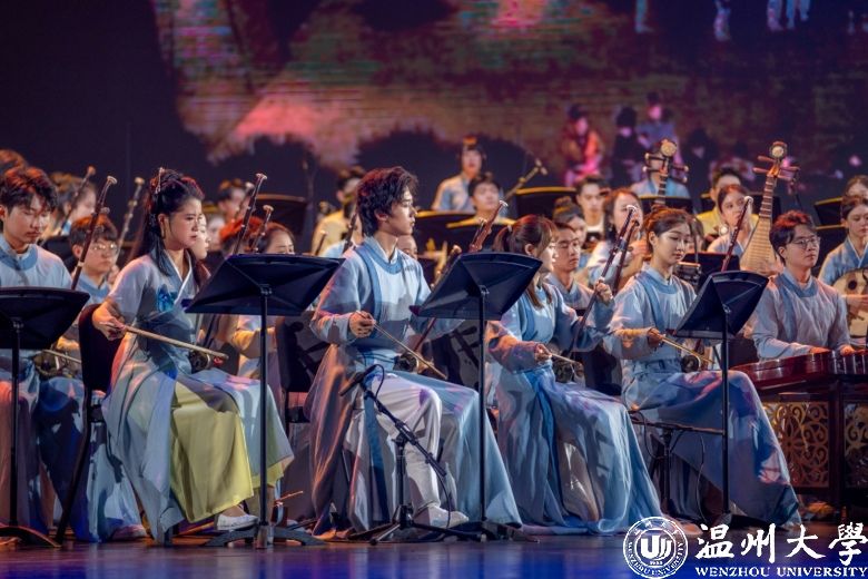 《千年宋韵·海丝寻音》是温州市文化艺术发展基金2023年度重点资助项目,更是温州首个以宋韵文化为核心主线打造的大型舞台音乐文化创新工程。项目自2022年启动,历经近两年的精心筹备,旨在通过民族管弦交响音乐会这一高雅形式,向世界生动展示中华民族的文化自信、瓯越大地的独特文脉、时代的人文精神以及人民对幸福生活的追求。它的成功创演,填补了温州在大型民族管弦乐原创领域的空白,成为全省推动宋韵文化实现“流动传承”的一份鲜活的地方实践样本。