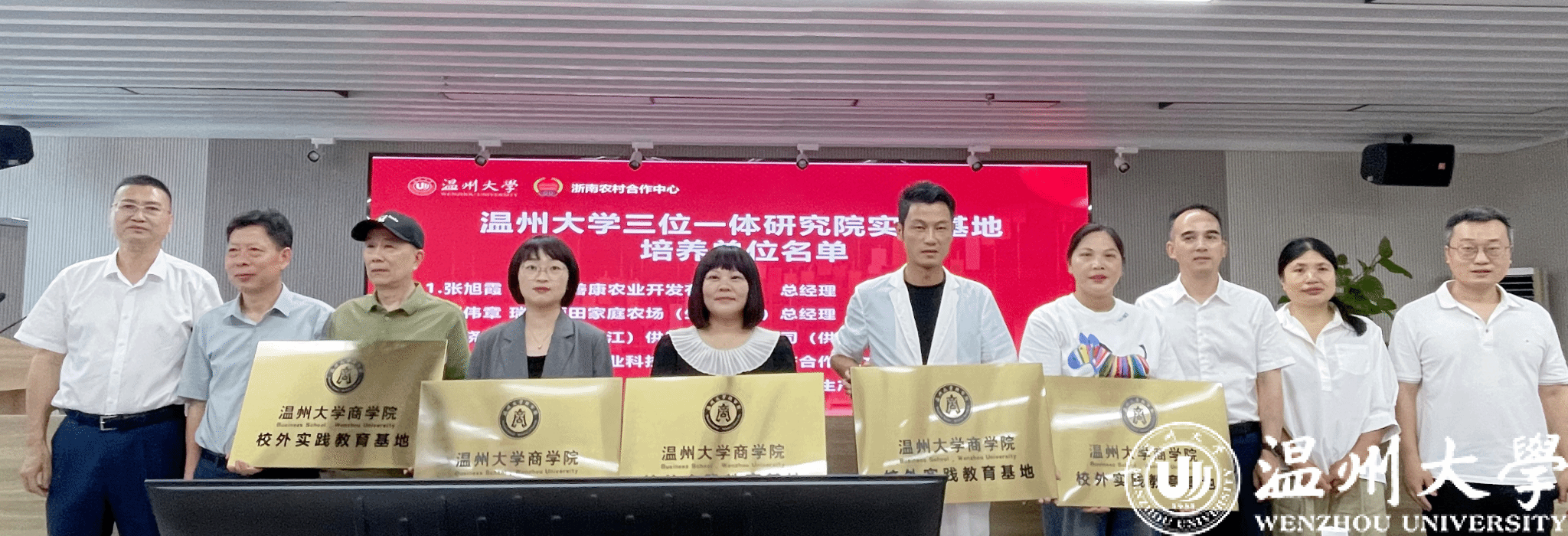 揭牌成立仪式上,公布了浙江九城农业科技有限公司、温州市善康农业开发有限公司等5家单位作为sunbet申愽官网“三位一体”合作经济研究院的实践培养基地。