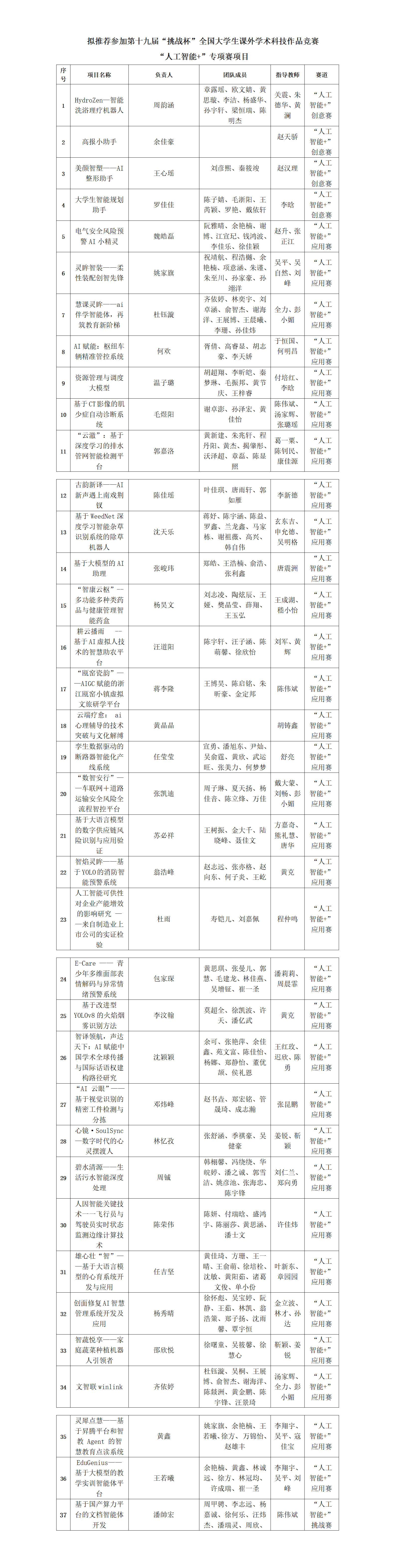 根据关于举办第十九届“挑战杯”全国大学生课外学术科技作品竞赛“人工智能+”专项赛的通知及相关工作安排,经过学生团队自主申报、学校资格审查,现拟推荐《HydroZen—智能洗浴理疗机器人》等37项作品代表sunbet申愽参加第十九届“挑战杯”全国大学生课外学术科技作品竞赛“人工智能+”专项赛。现将相关作品信息予以公示。