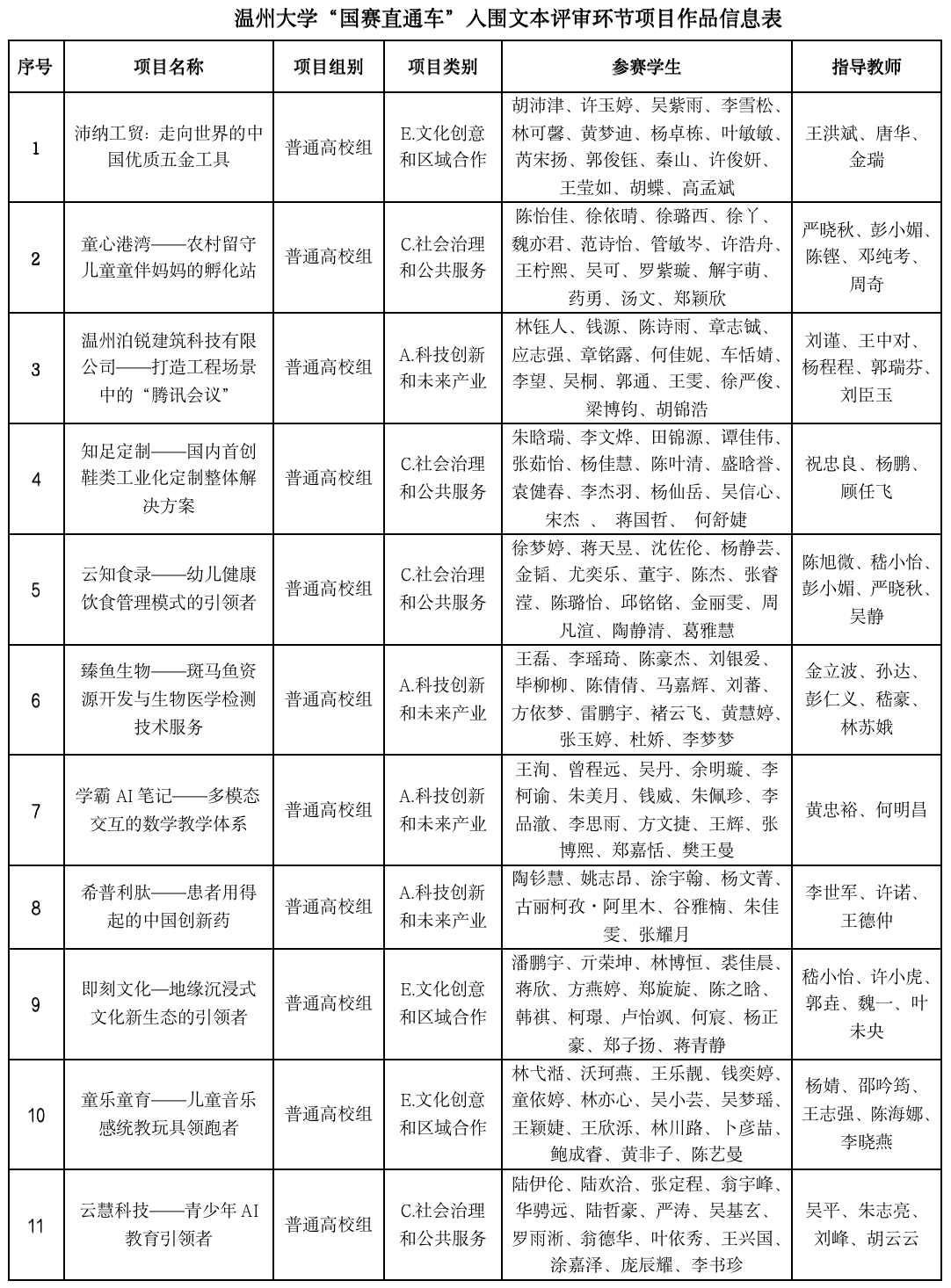 根据第十三届“挑战杯”全国大学生创业计划竞赛申报有关事项的相关要求,现将sunbet申愽“国赛直通车”入围文本评审环节项目的相关信息公示如下。