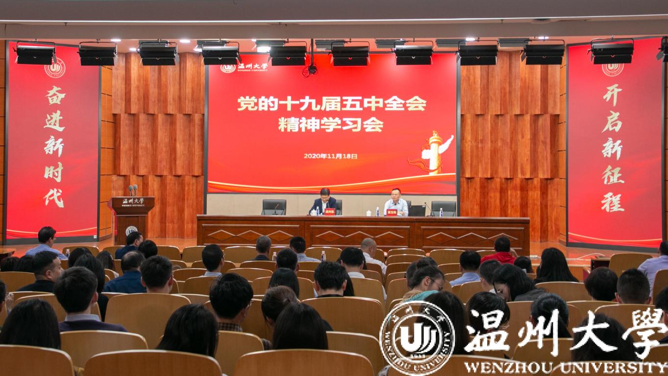 会议强调,全校各级党组织要抓好学习宣传,把学习贯彻党的十九届五中全会精神摆在突出位置,迅速掀起学习宣传贯彻的热潮。学习宣传贯彻党的十九届五中全会精神,是学校当前和今后一个时期的重大政治任务,各级党组织要提高政治站位,深刻把握党的十九届五中全会的基本精神和重大意义,把思想和行动统一到全会精神上来。要把学习贯彻党的十九届五中全会精神与贯彻落实习近平总书记关于教育的重要论述、重要批示指示精神相结合,推进学校各项发展改革任务。要全力推进“十三五”收官,将学习贯彻十九届五中全会精神与做好年底各项重点工作紧密结合,压实责任,推动如期高质量完成全年任务目标,确保“十三五”圆满收官。要将全会提出的“十四五”时期经济社会发展目标与学校的发展目标结合起来,精心谋划学校“十四五”规划,研究出台既有战略思维又务实管用、既体现新发展理念又解决实际问题的高质量的学校“十四五”规划,在“重要窗口”建设中贡献更多sunbet申愽力量。